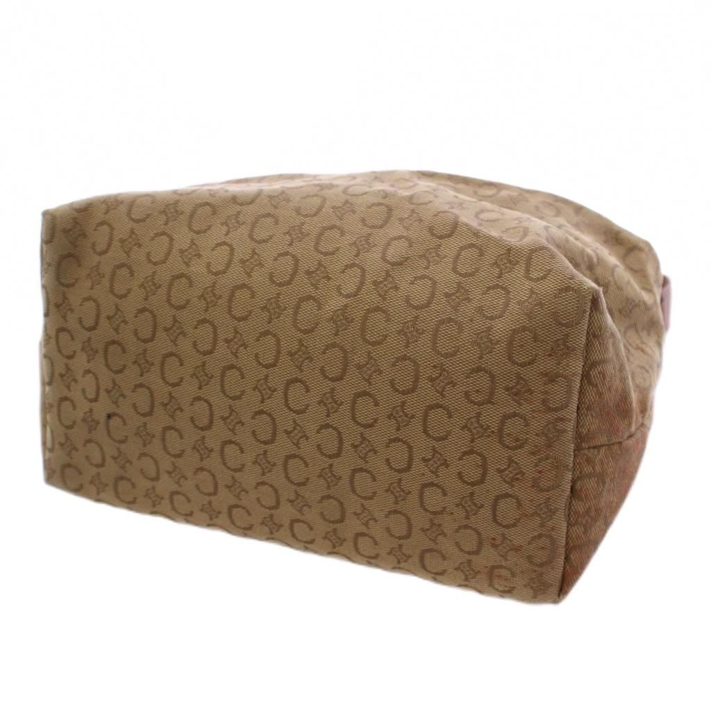 CELINE Hand Shoulder Bag Tote Purse C Macadam Canvas Leather Beige Authentic