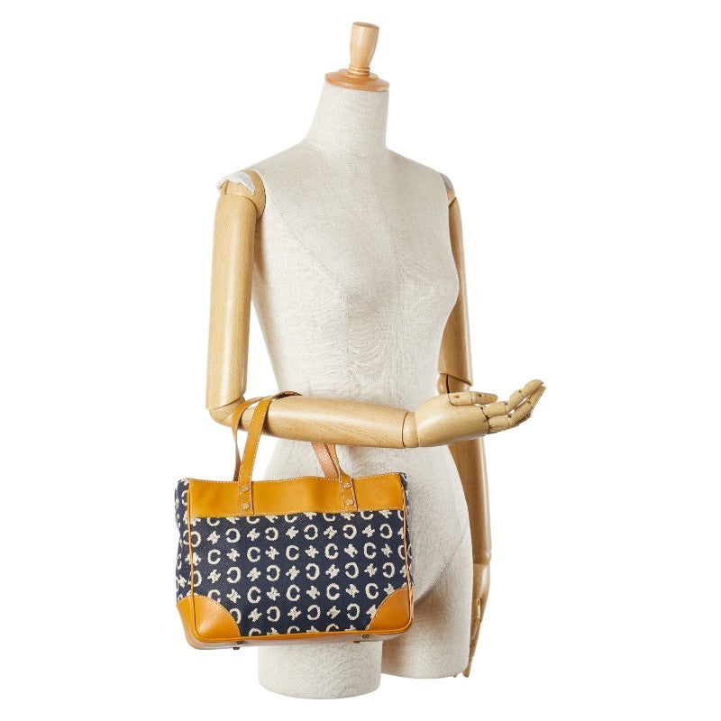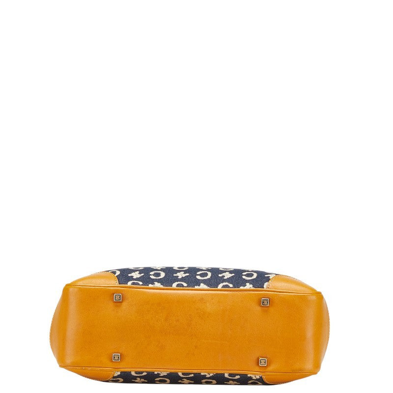 CELINE handbag Purse C Macadam Navy Denim Brown Leather Women's Authentic Used