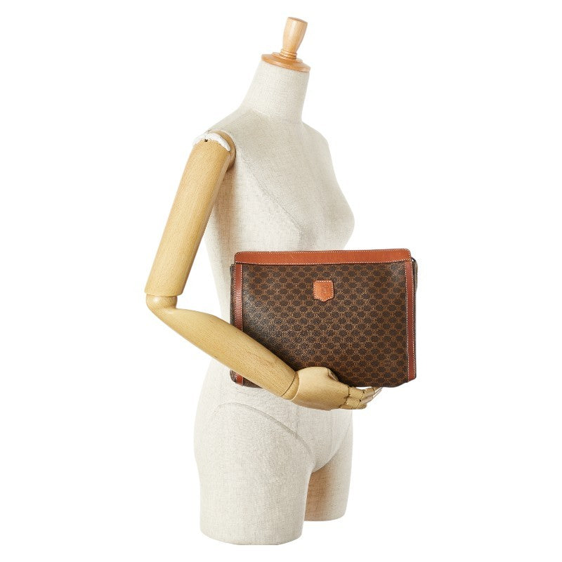CELINE handbag Purse Macadam Brown clutch bag PVC Leather Women's Used Authentic