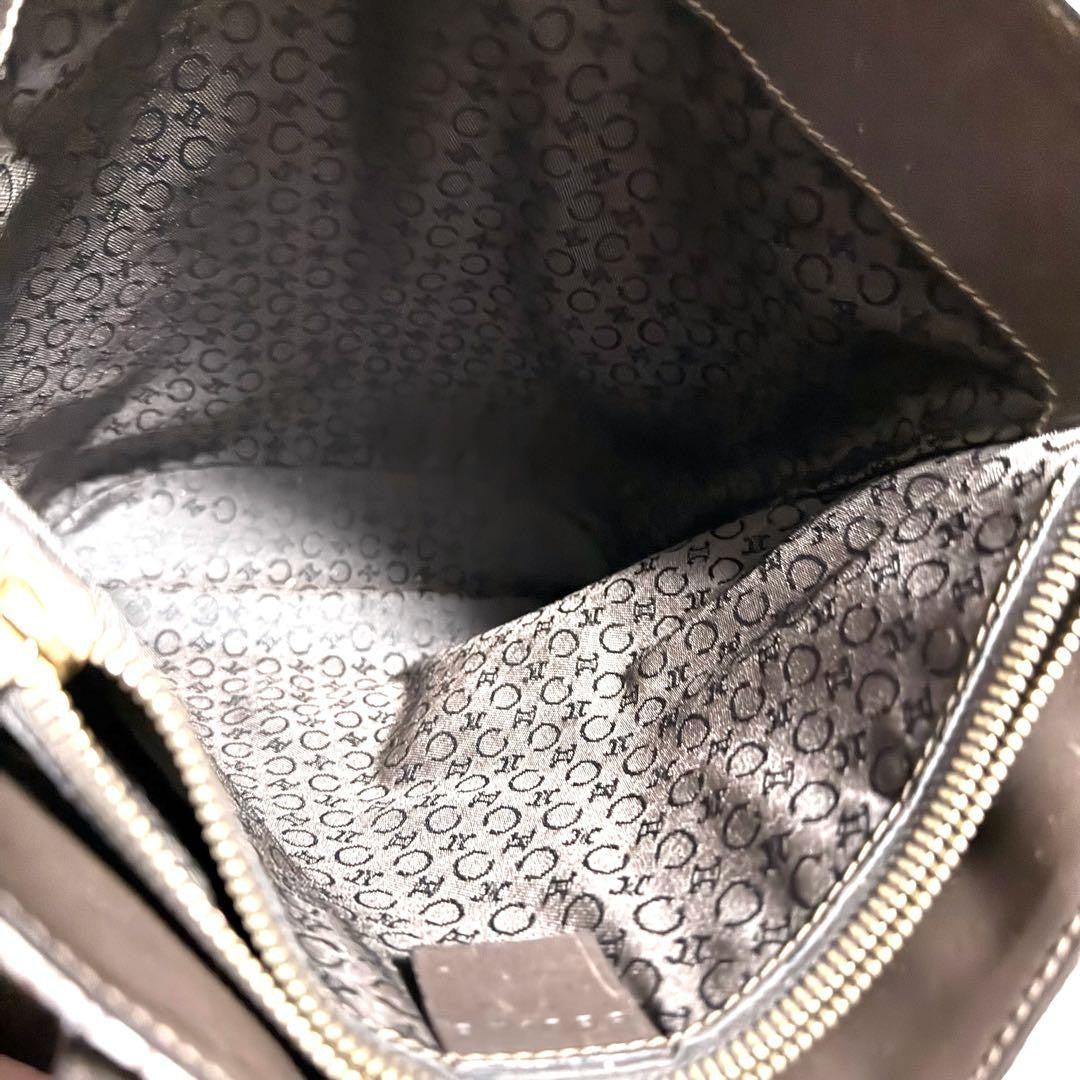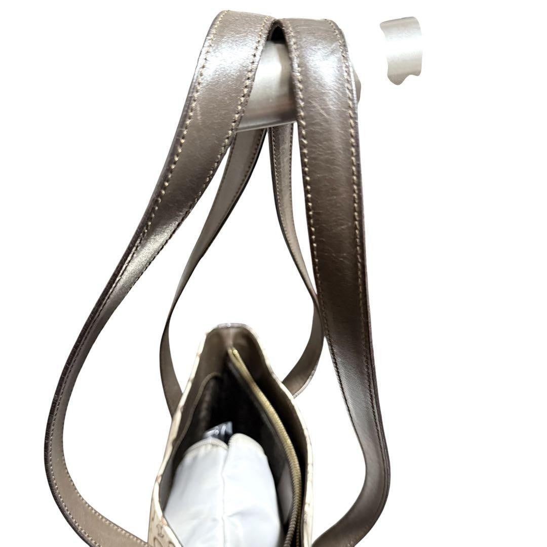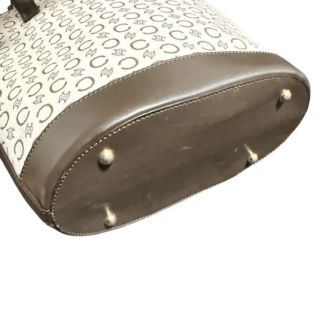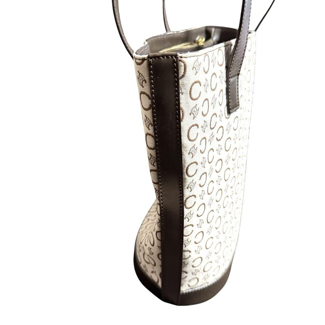 CELINE handbag Tote Purse C Blazon Canvas Leather Beige Dark Brown Used Women's