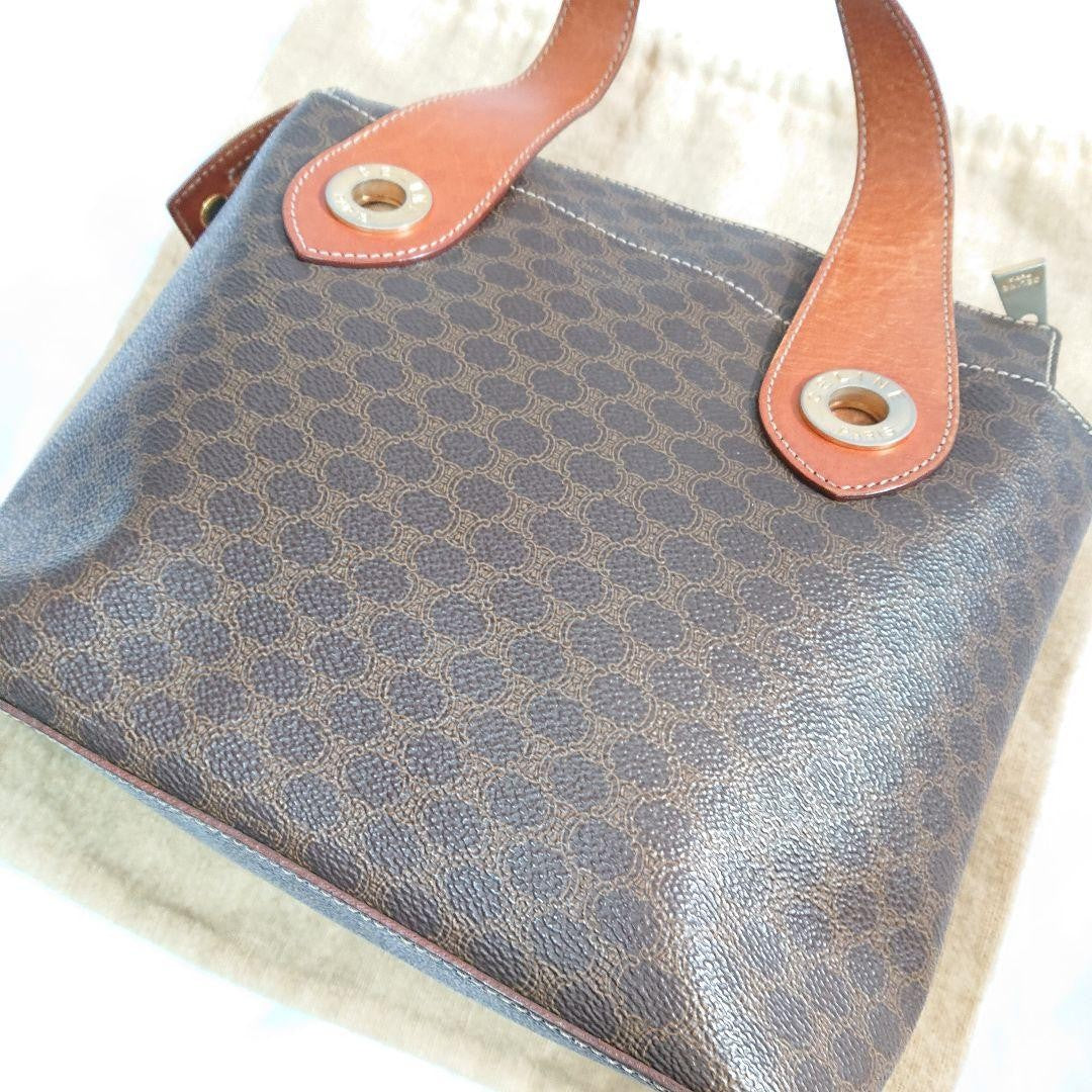 CELINE Macadam Purse Handbags tote bag shoulder bag Leather PVC Brown Beige Auth