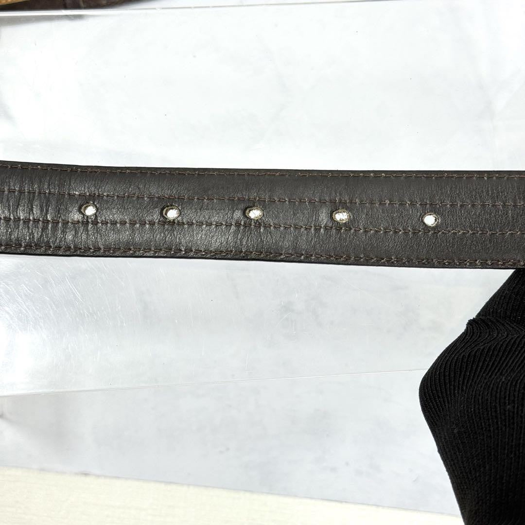 CELINE Men's Belt Horse carriage Dark Brown Camel Gold Leather Authentic