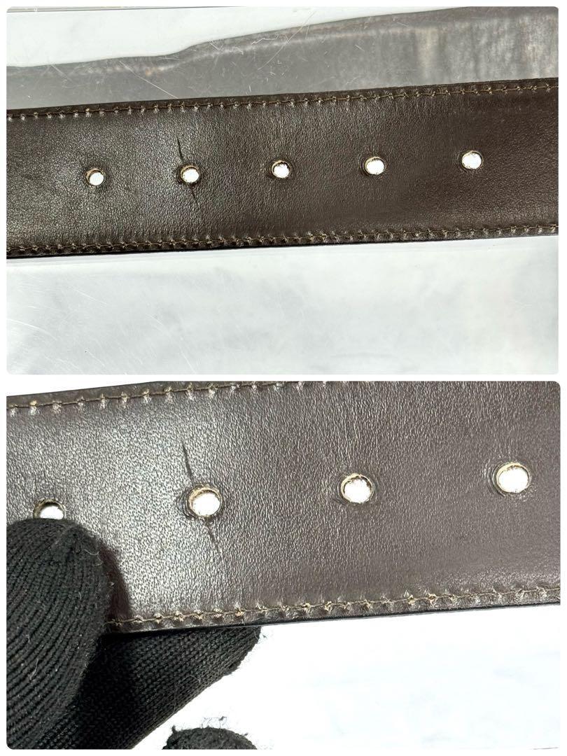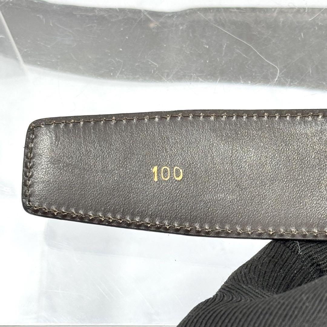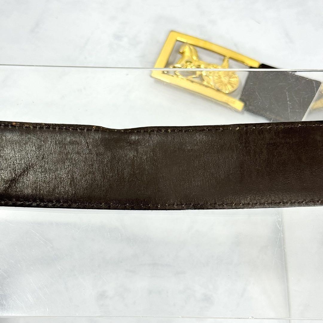 CELINE Men's Belt Horse carriage Dark Brown Gold Leather Authentic