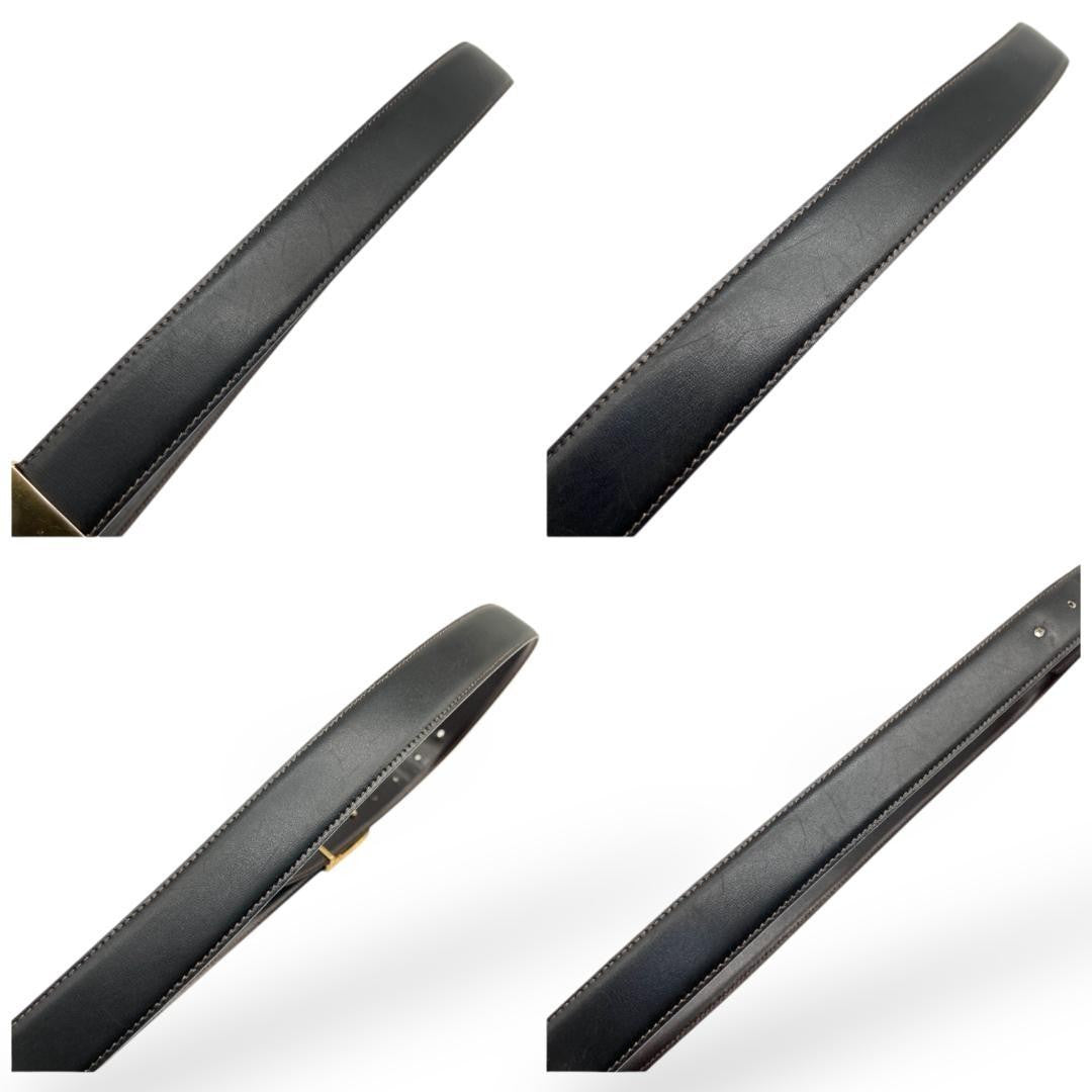CELINE Men's Belt Macadam Black Gold Leather Authentic