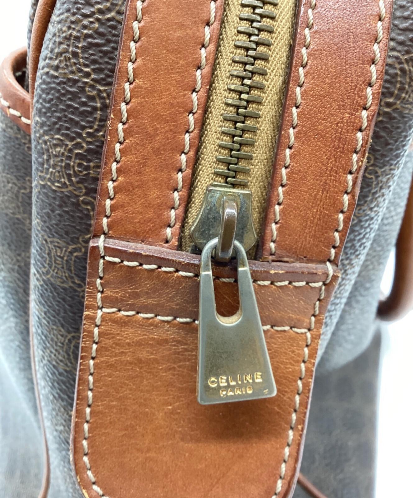 CELINE Mini Boston Bag Hand Tote Purse Macadam Brown Authentic