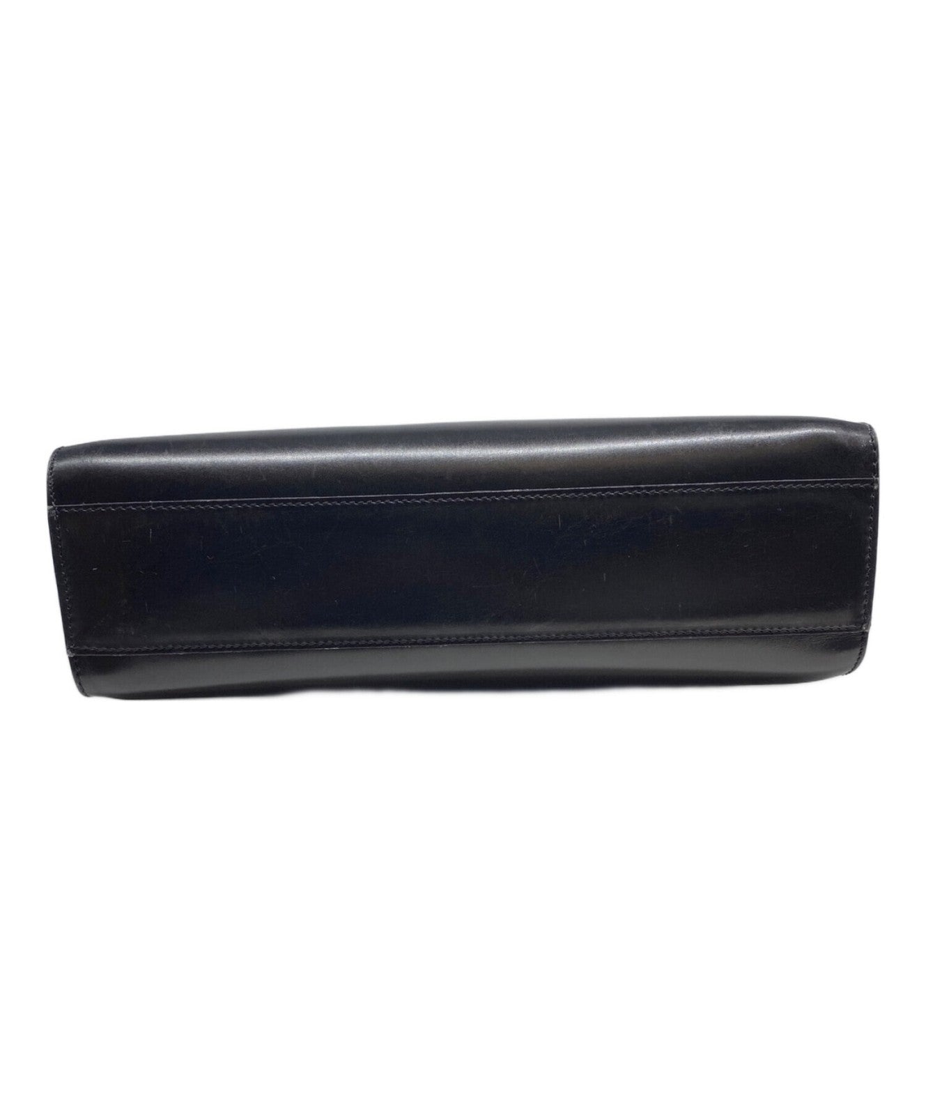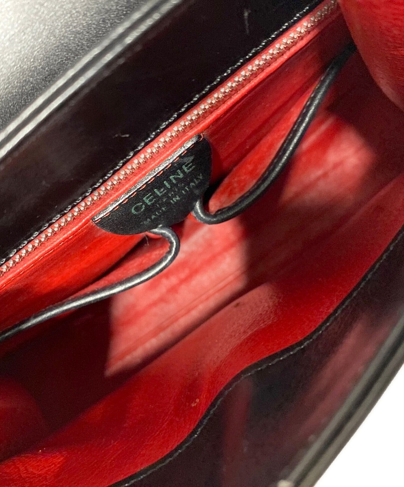 CELINE Purse Box calf circle logo chain shoulder bag Black Gold Leather Unisex