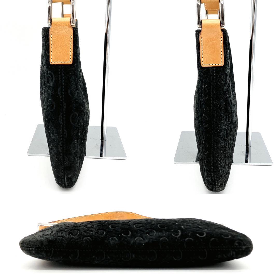 CELINE Shoulder Bag Purse C Macadam Suede Leather Black Authentic