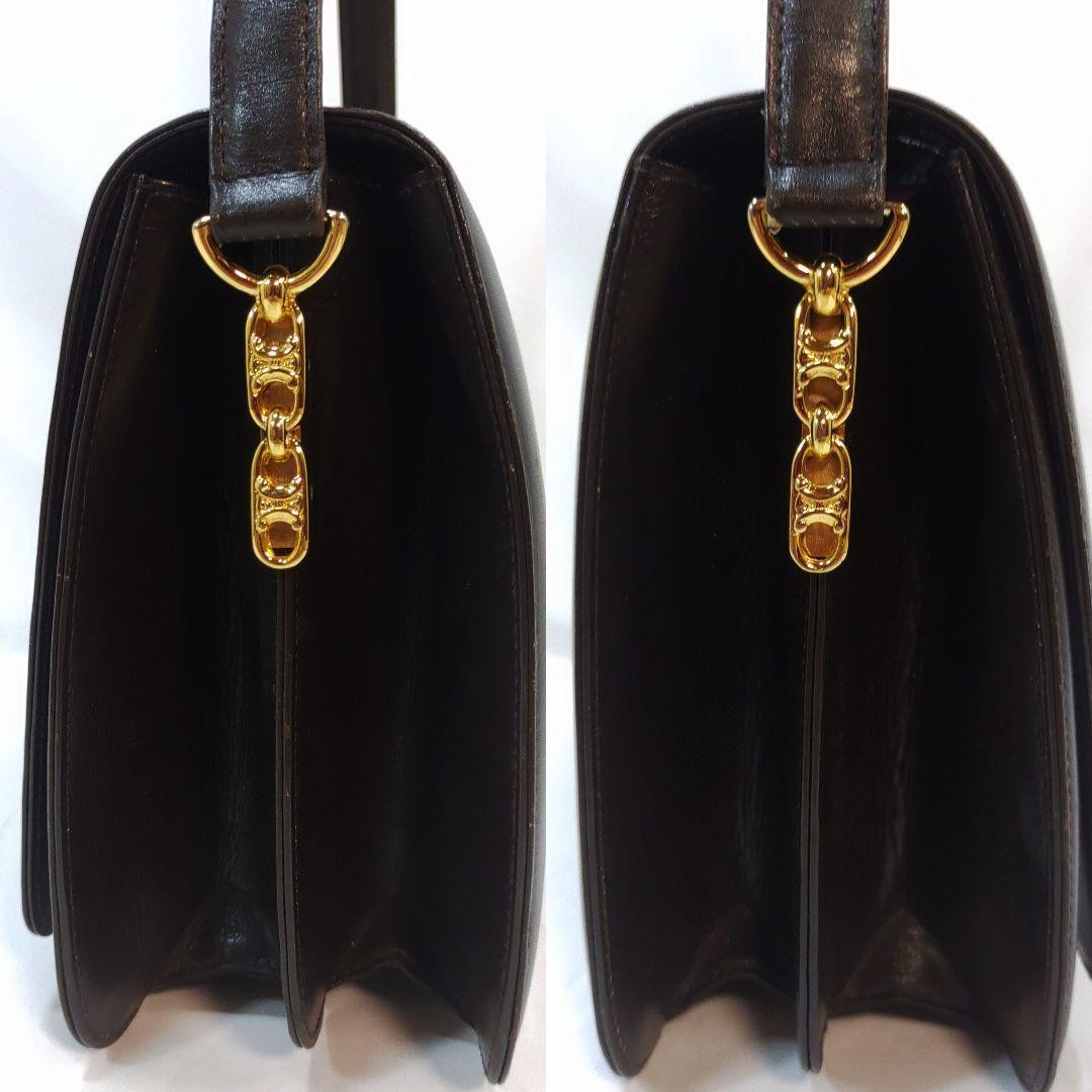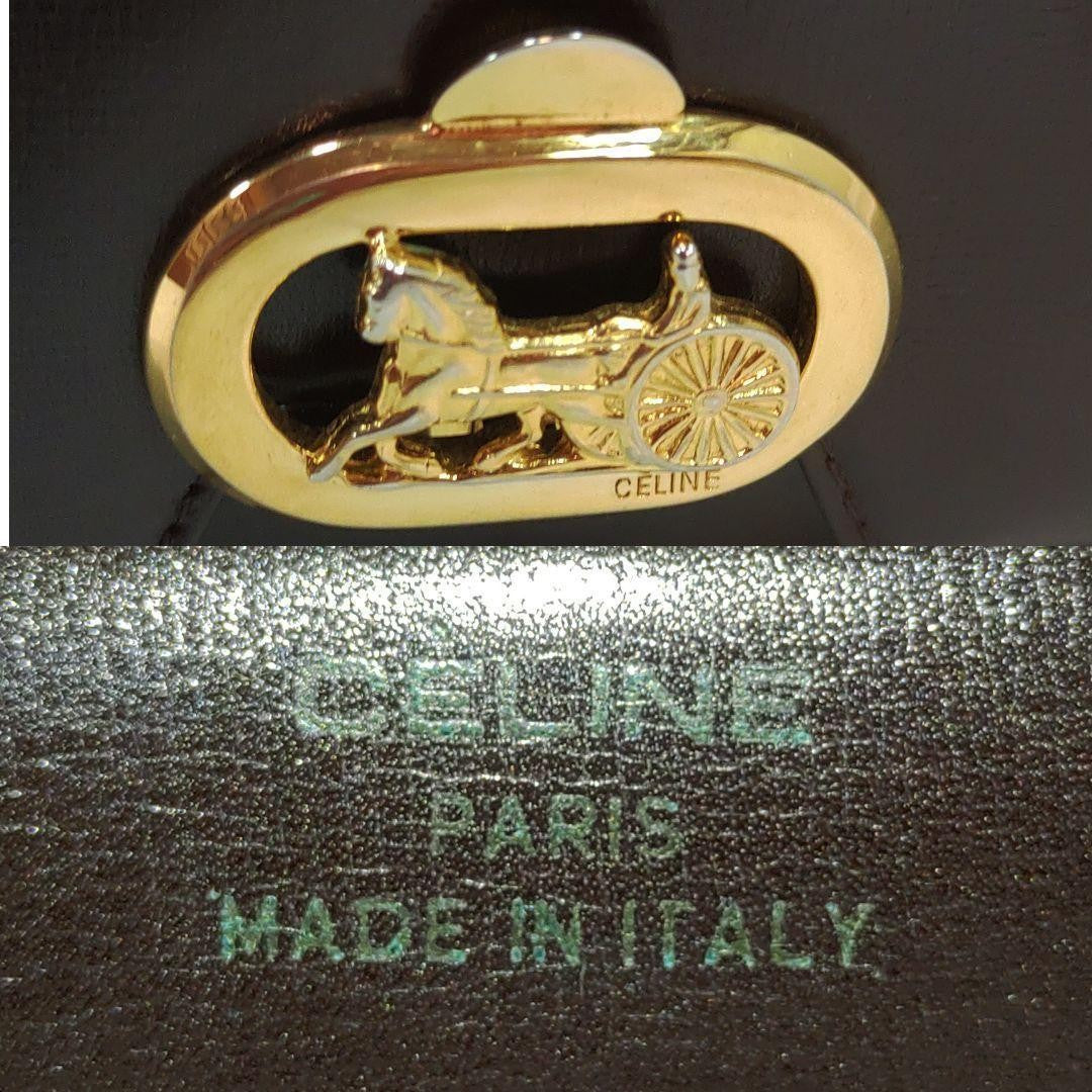 CELINE Shoulder Bag Purse Horse carriage Leather Dark Brown Authentic