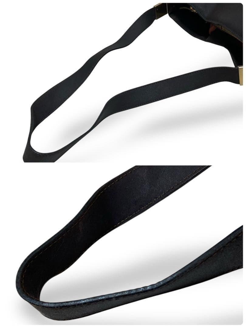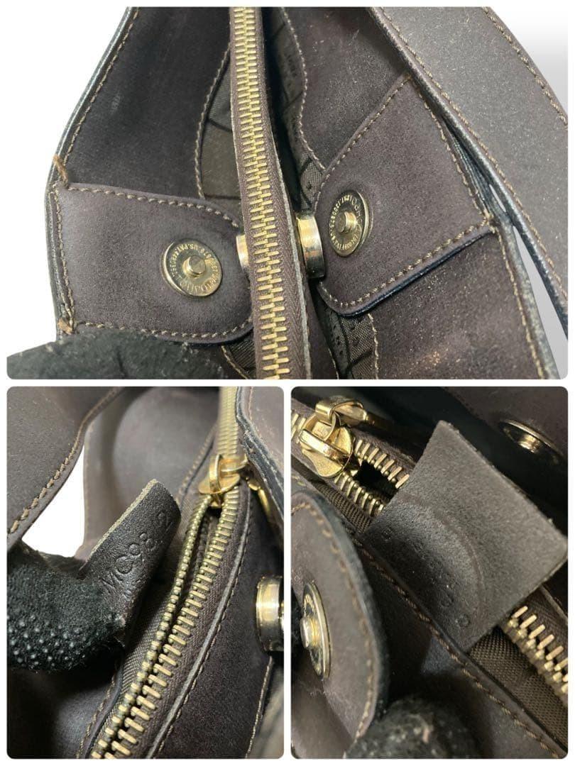 The shoulder strap has slight deformation. There is some scuffing and peeling, but it's not noticeable. This is a stylish item with a vintage feel.