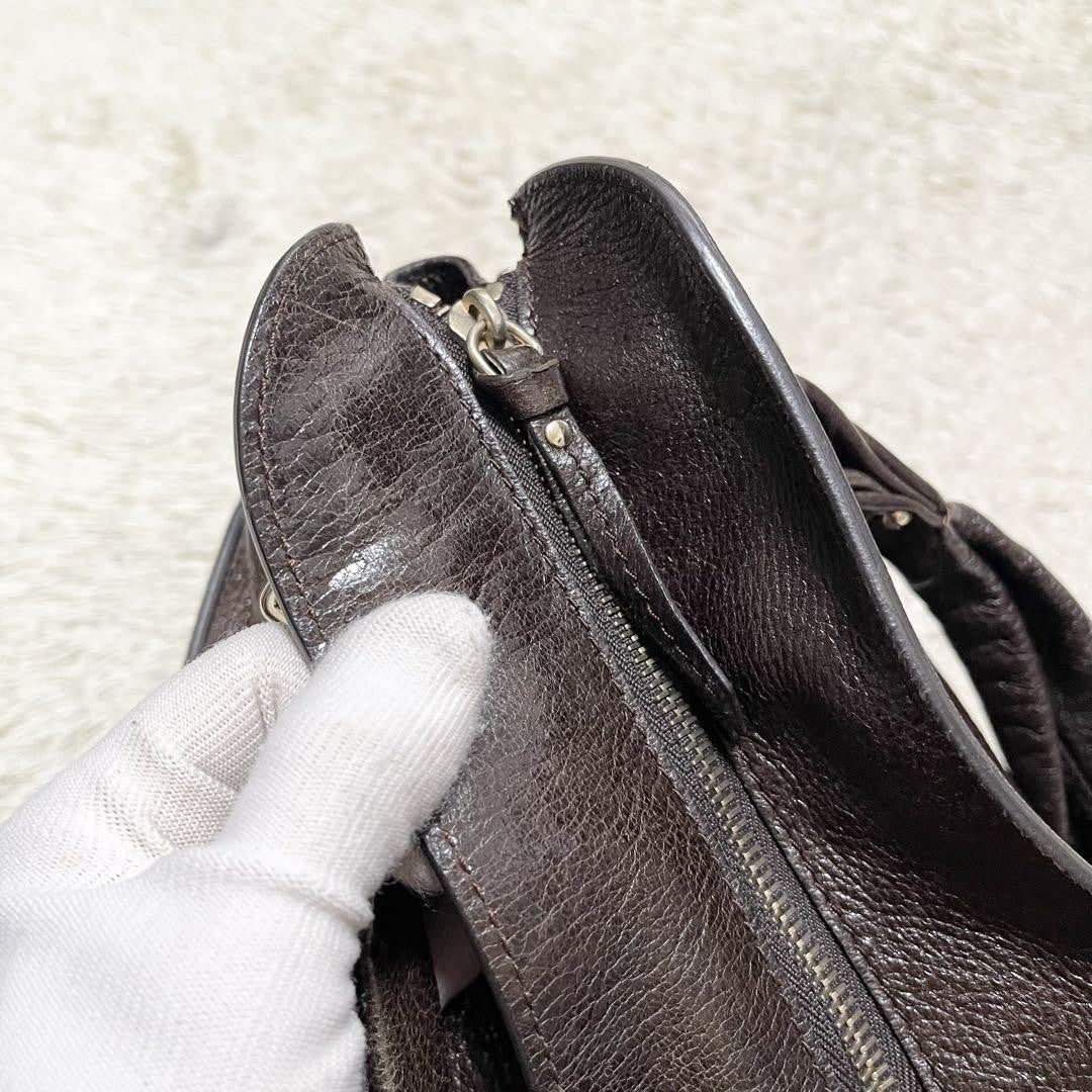 CELINE Shoulder Bag Purse Leather Brown Authentic