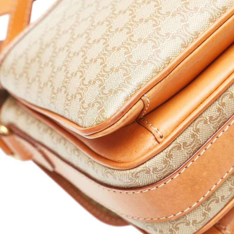 CELINE shoulder bag Purse Macadam Beige Brown PVC Leather Women's Authentic Used