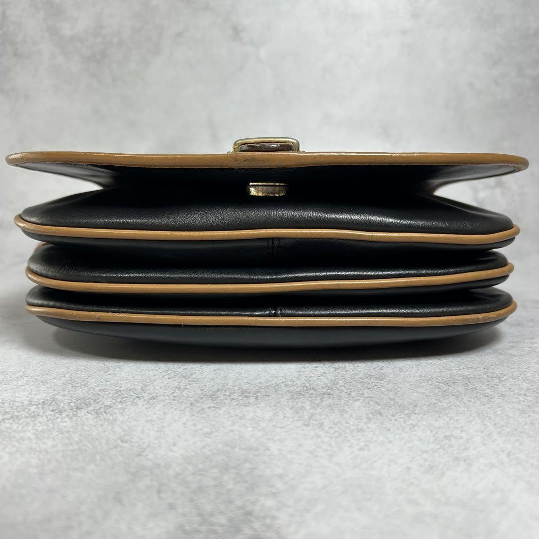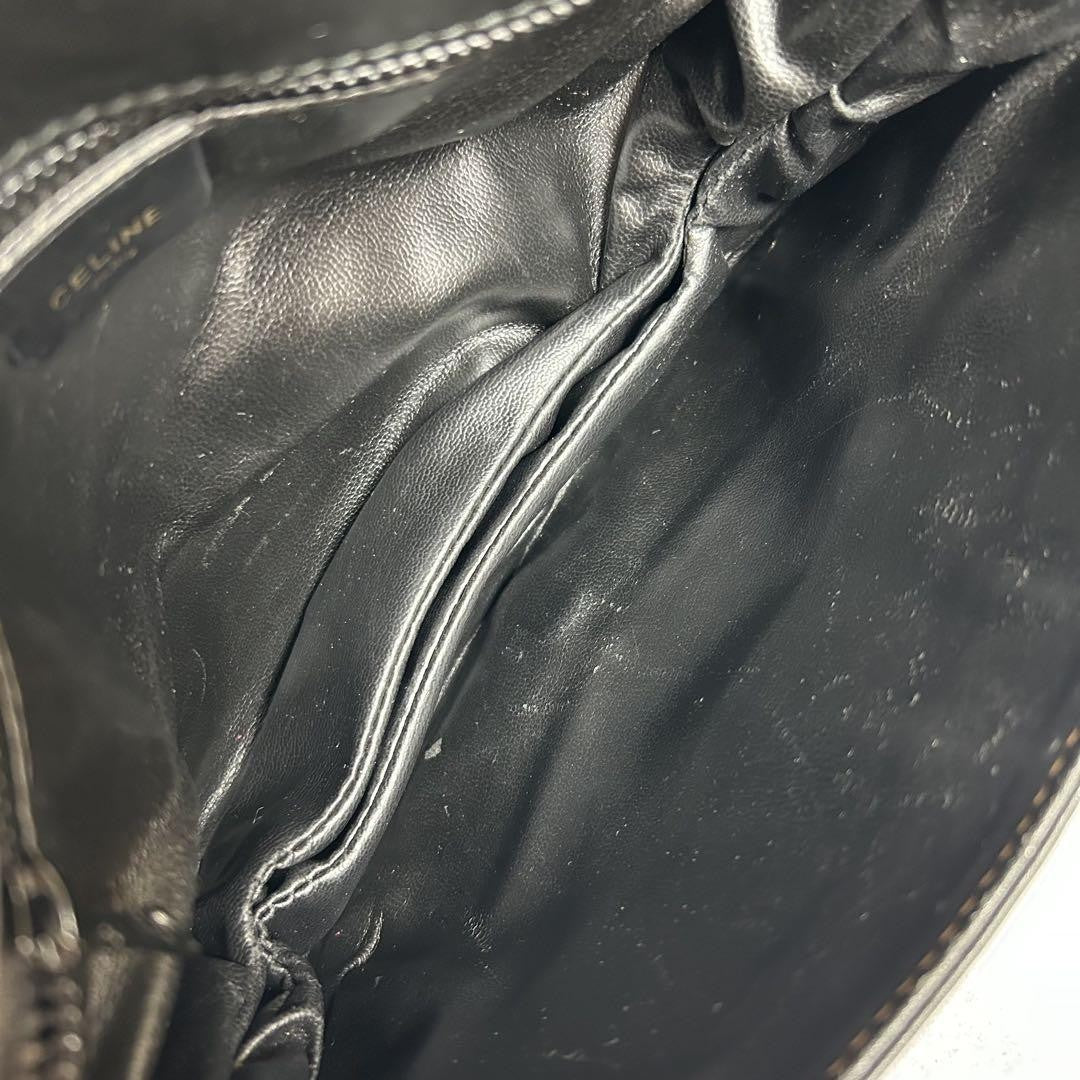 CELINE Shoulder Bag Purse Macadam Leather Black Authentic