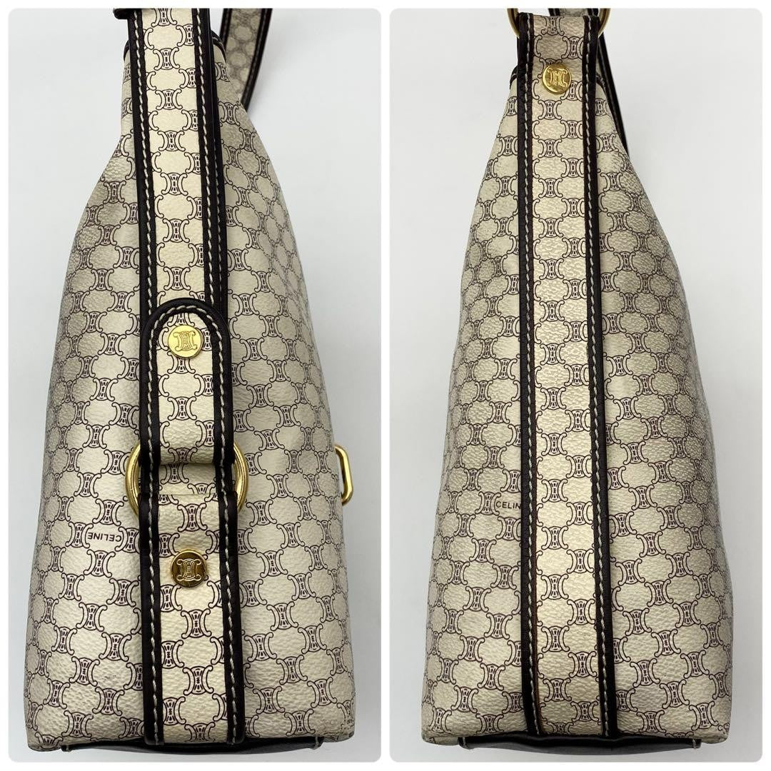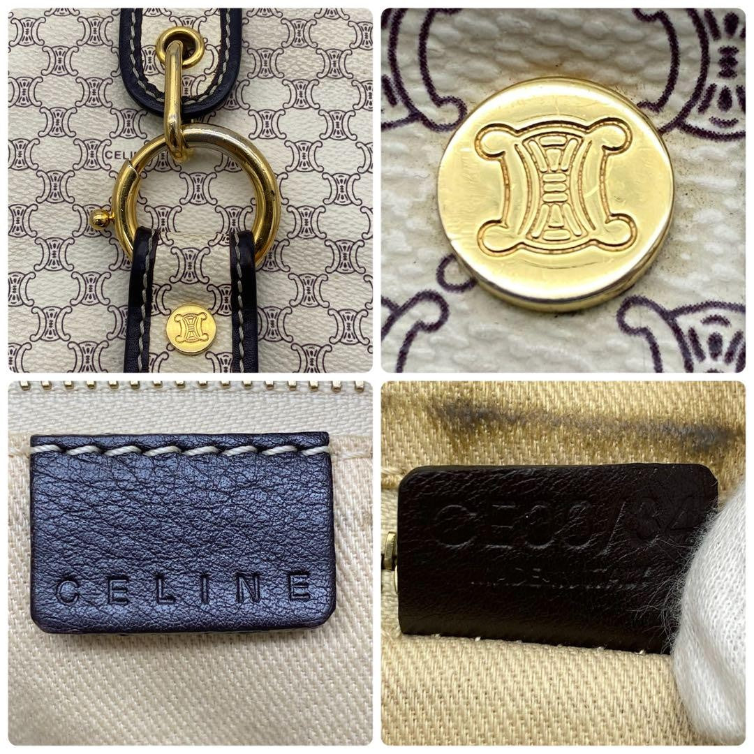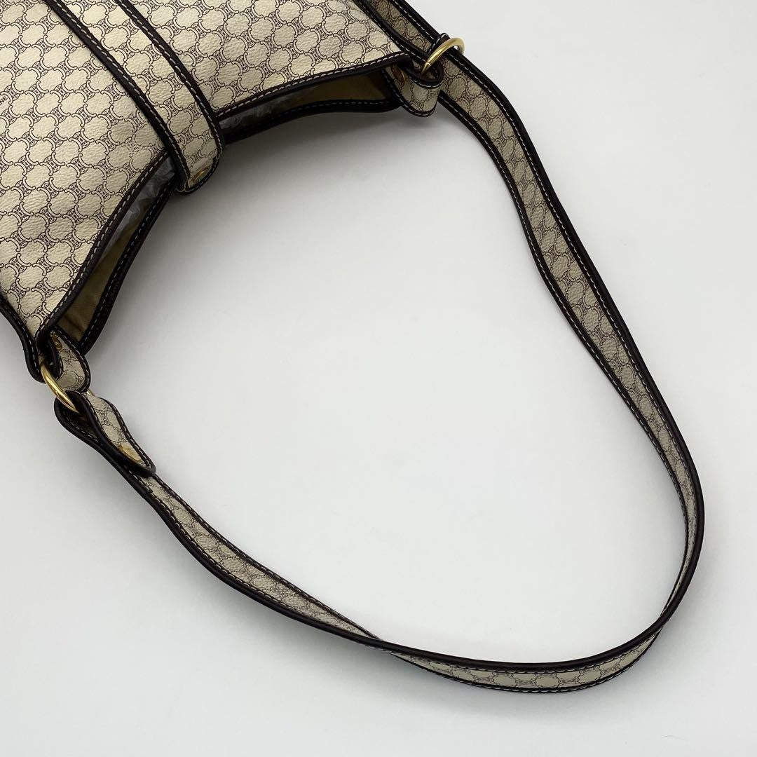 CELINE Shoulder Bag Purse Macadam PVC Leather Off White Brown Authentic