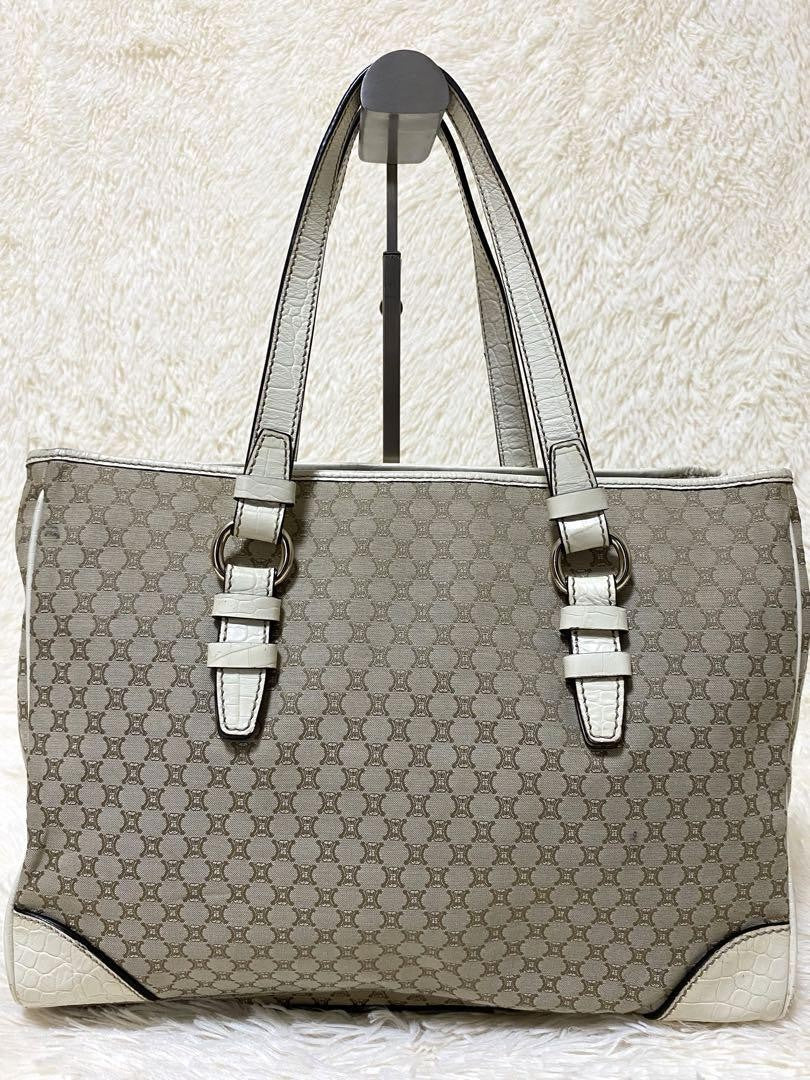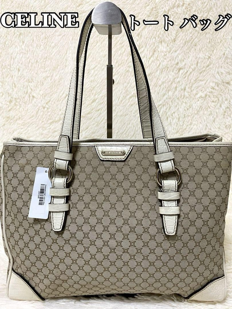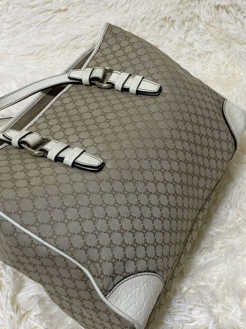 CELINE tote bag Purse Macadam Canvas Leather Beige Women's Used Authentic