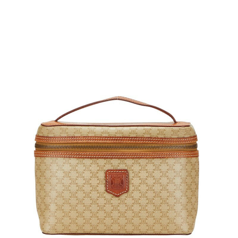 CELINE Vanity Hand Bag Tote Purse Macadam PVC Leather Beige Brown Authentic