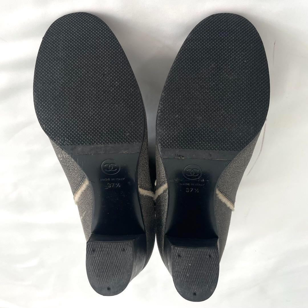 CHANEL Boots Shoes Cocomark EU 37.5 US 7.5 Mouton Leather Gray Authentic