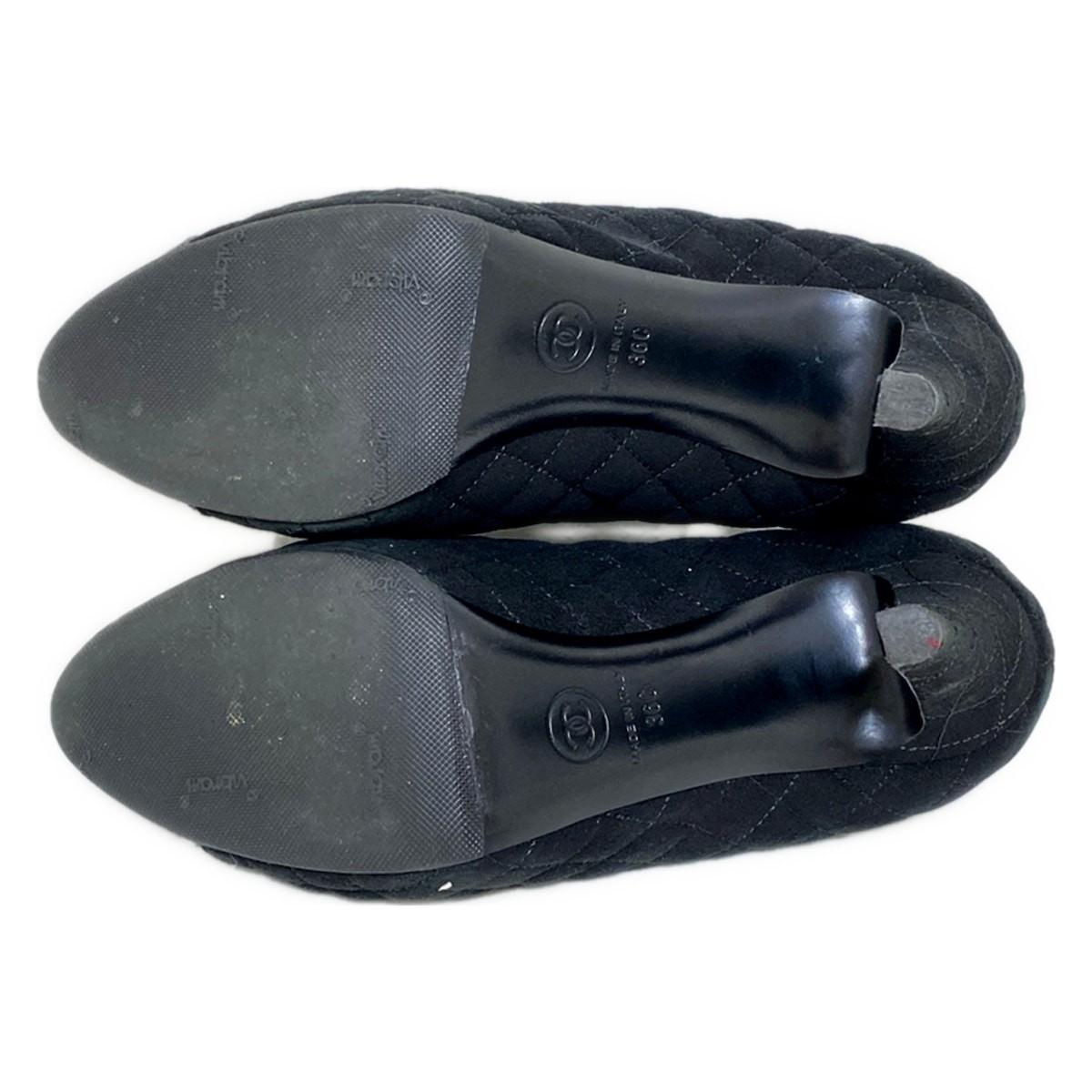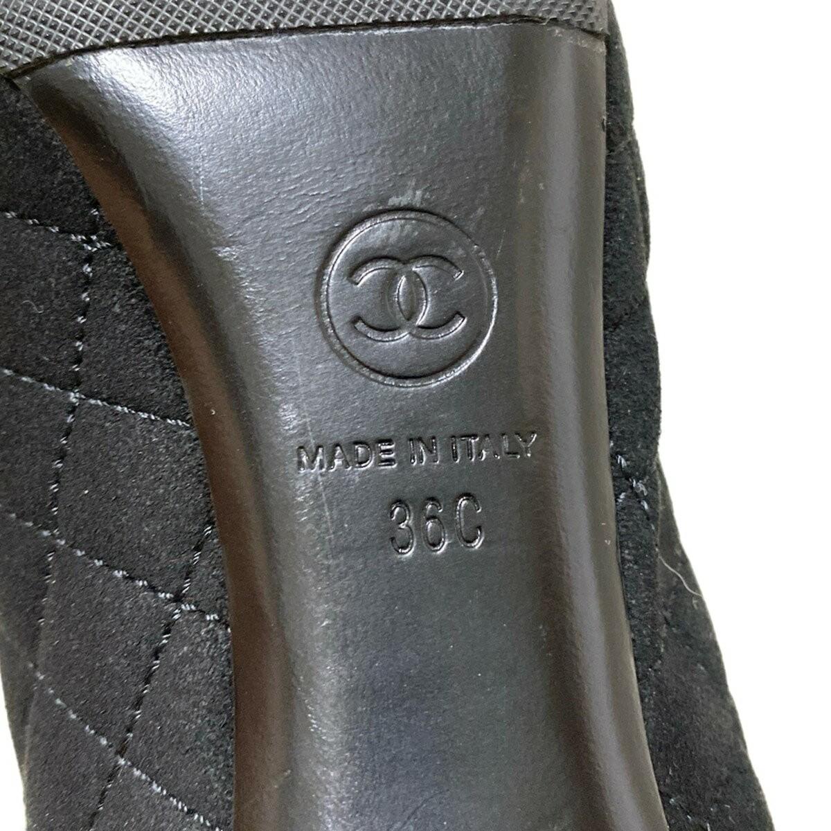 CHANEL Shoes Pumps Heel Cocomark EU 36 US 6 Suede Patent Leather Black Authentic