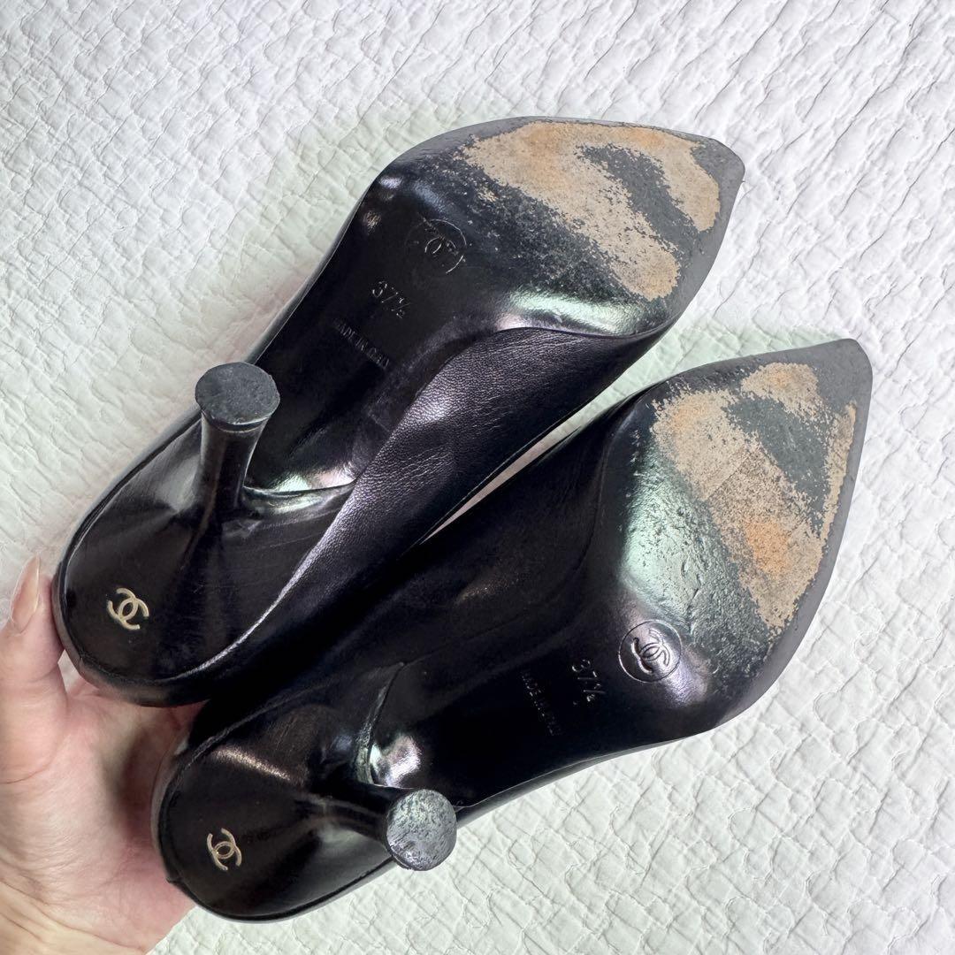 CHANEL Shoes Pumps Heel Cocomark EU 37.5 US 7.5 Leather Black Authentic