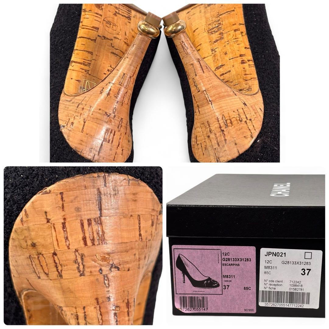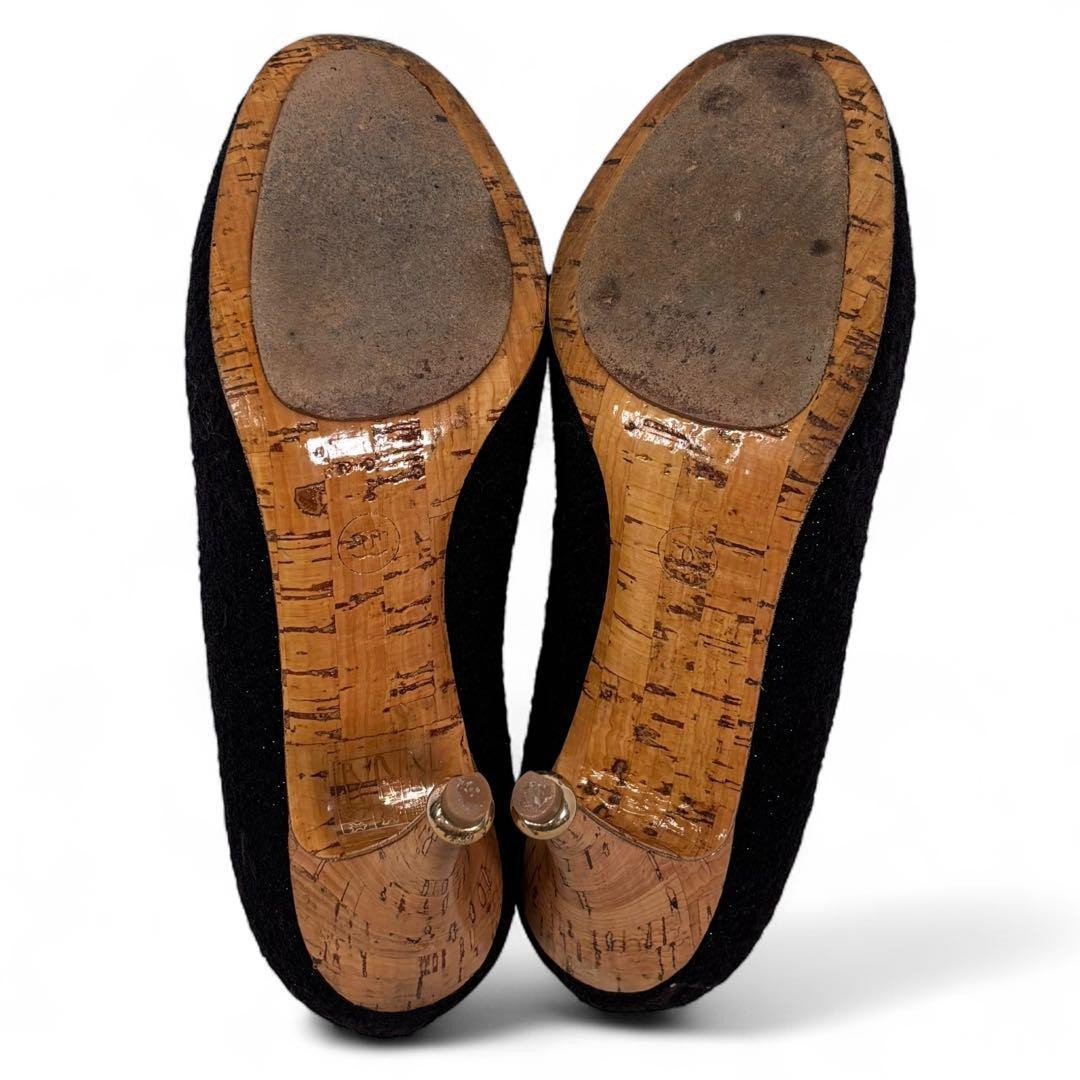 CHANEL Shoes Pumps Heel Cocomark EU 37 US 7 Black Authentic