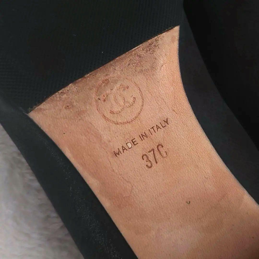 CHANEL Shoes Pumps Heel Cocomark EU 37 US 7 Leather Black Champagne Gold Auth