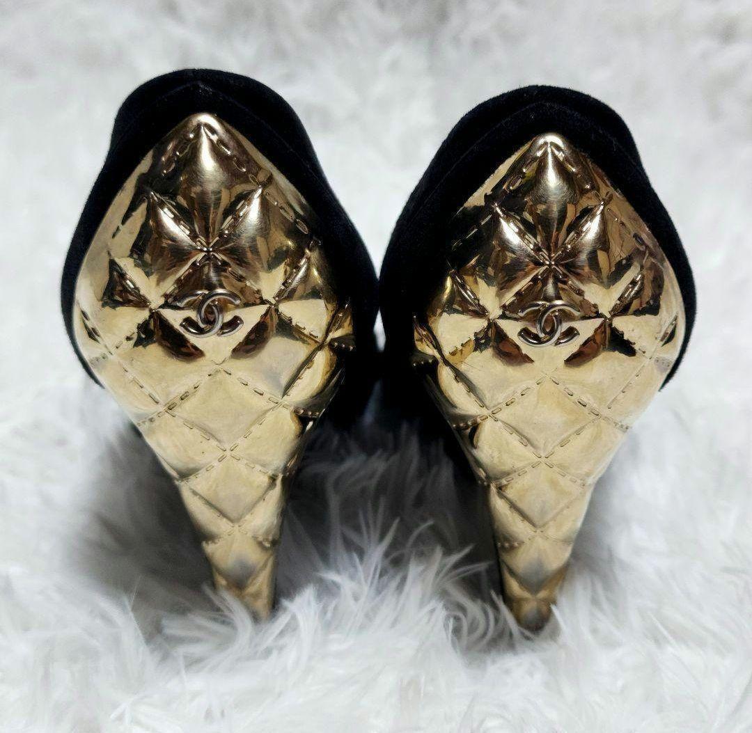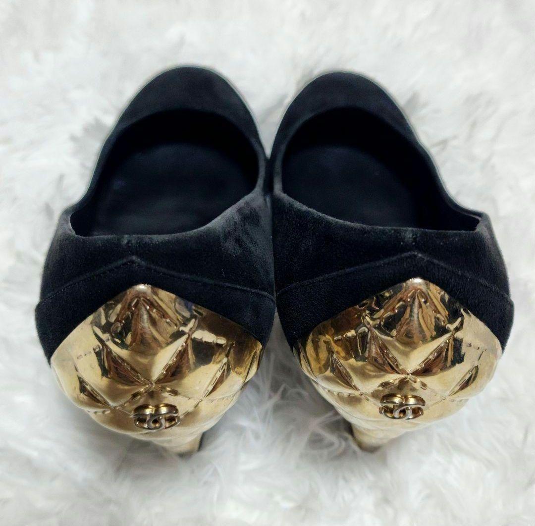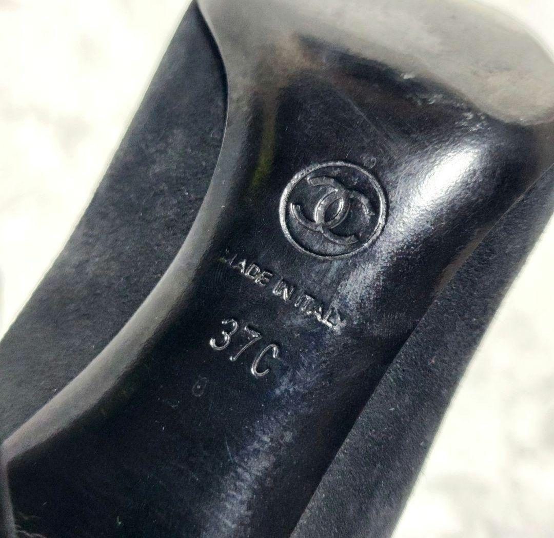 CHANEL Shoes Pumps Heel Cocomark EU 37 US 7 Suede Metal Black Authentic