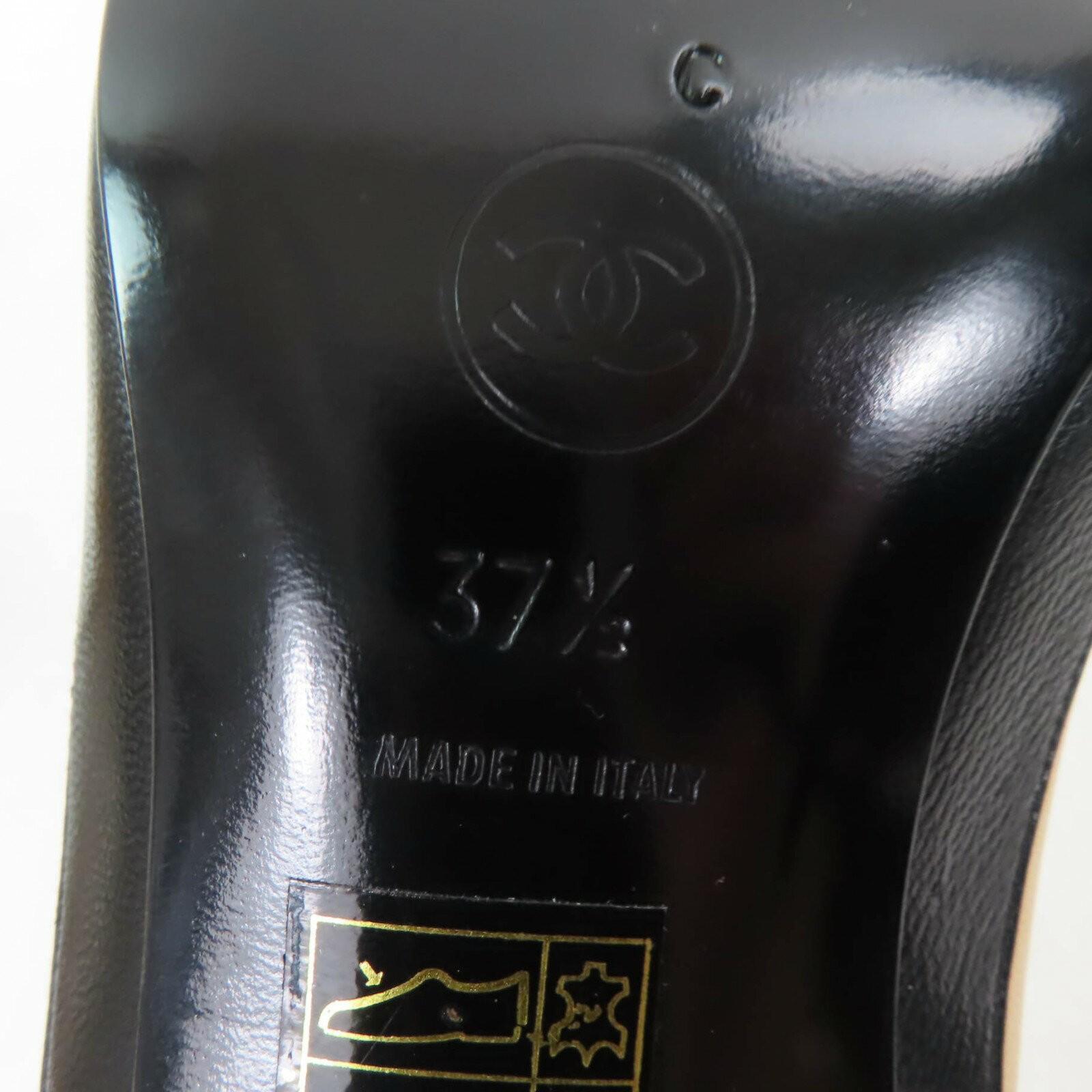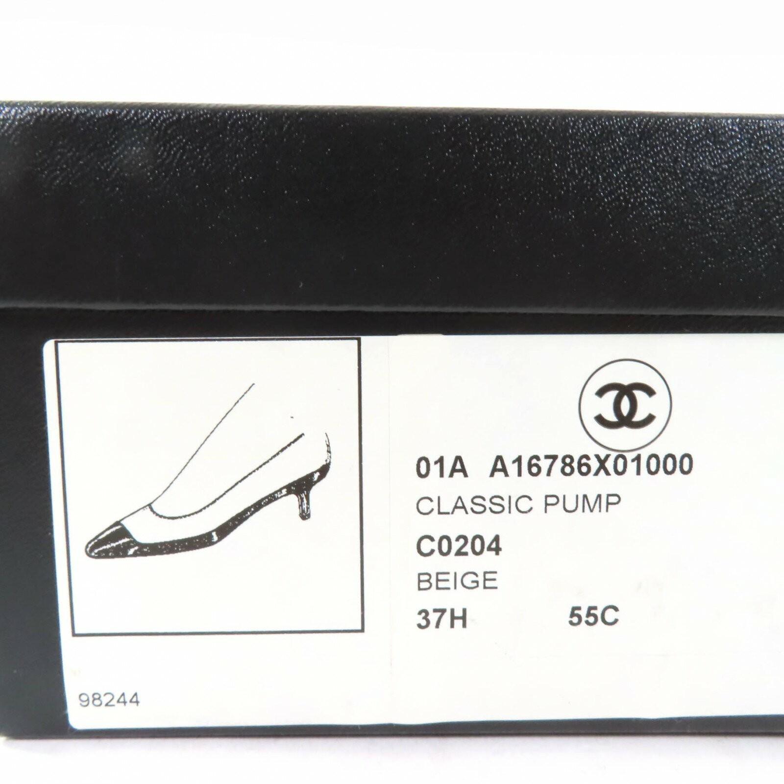 CHANEL Shoes Pumps Heel EU 37.5 US 7.5 Leather Beige Black Authentic