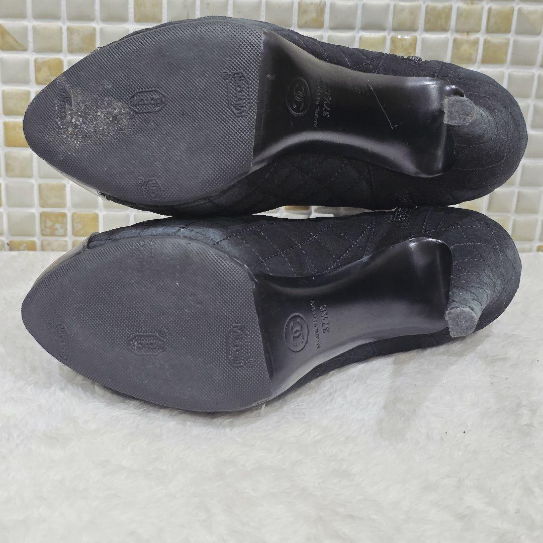 CHANEL Short Boots Shoes Cocomark EU 37.5 US 7.5 Suede Leather Black Authentic