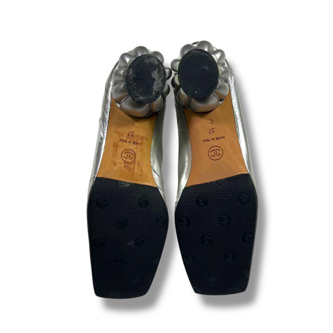 CHANEL Short Boots Shoes EU 37 US 7 Patent Leather Silver Authentic