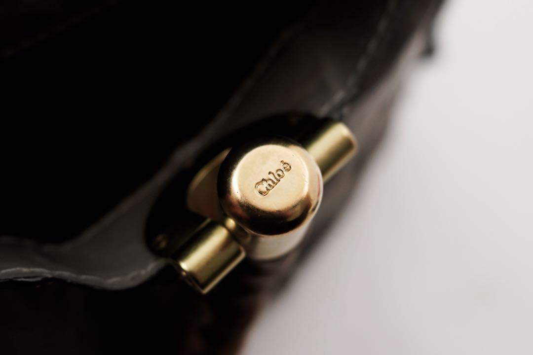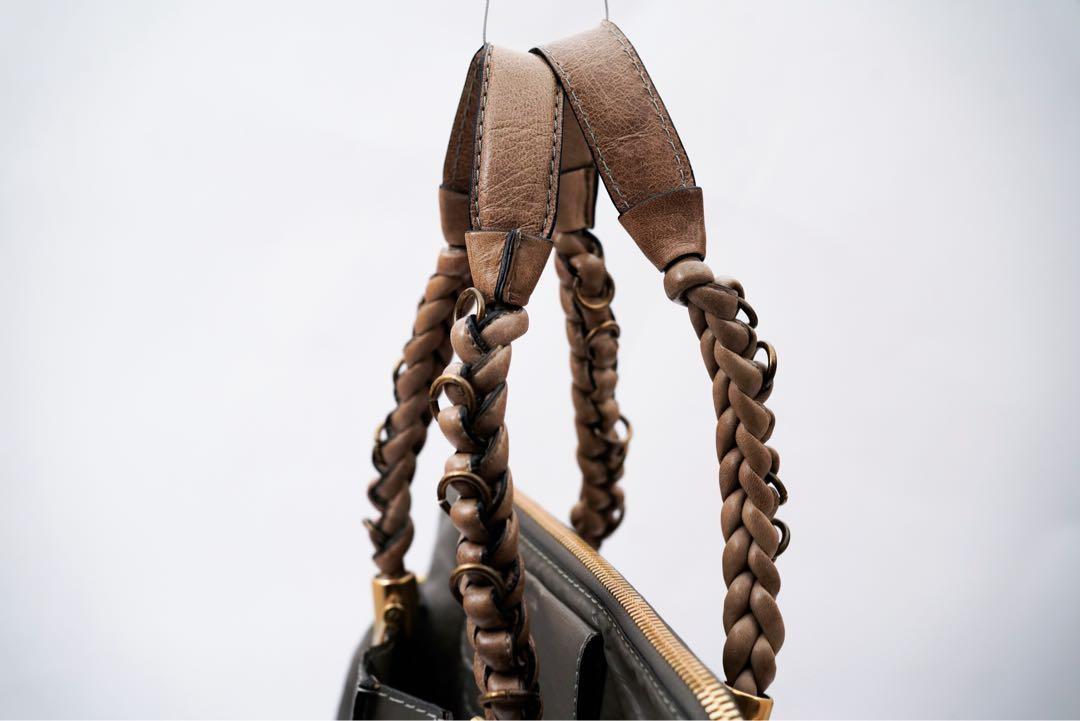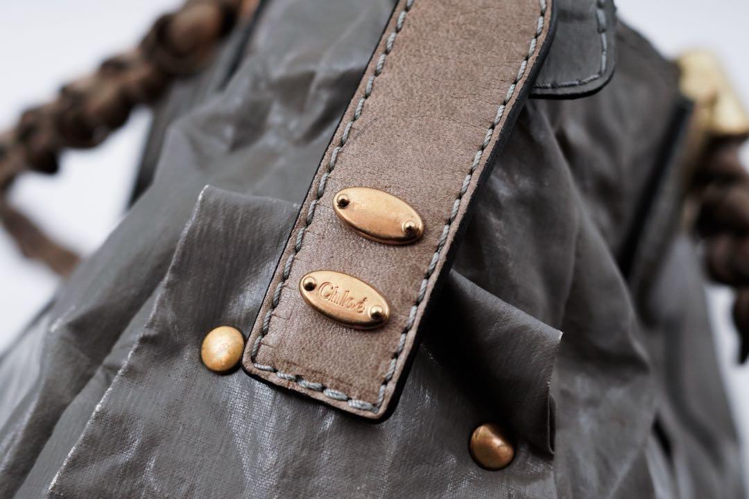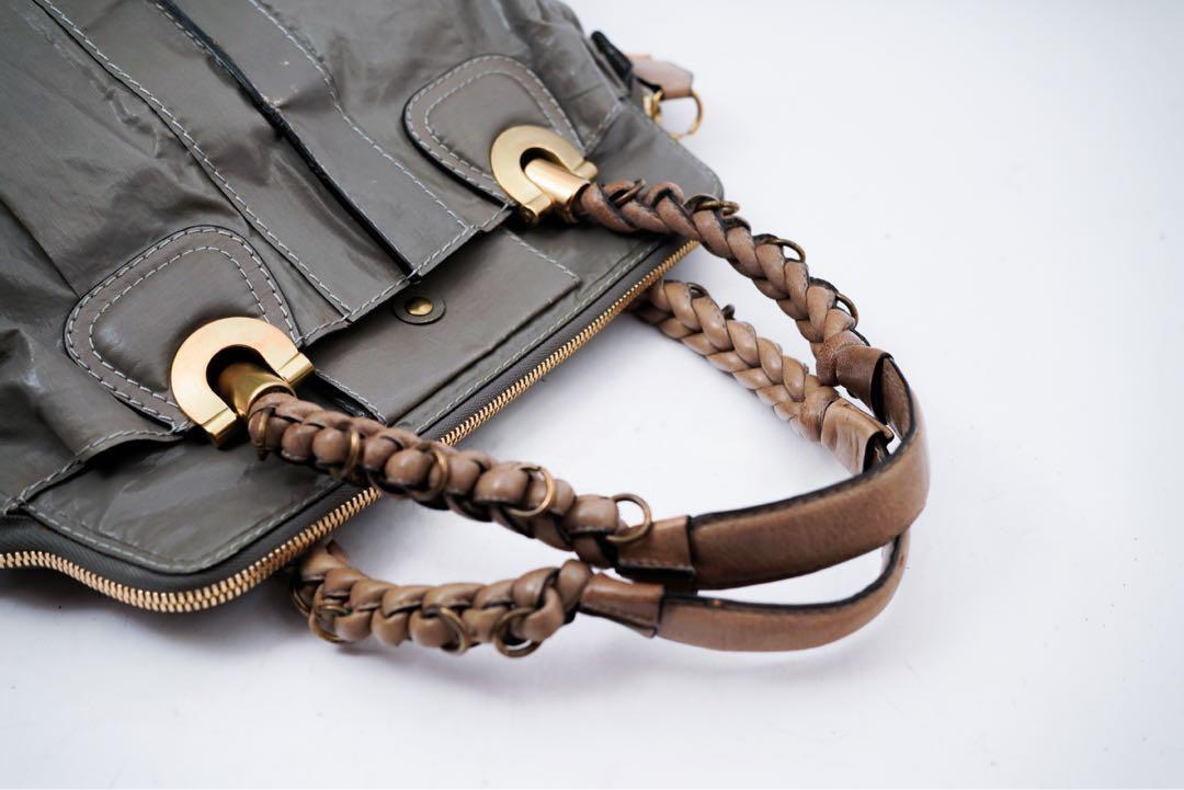 Chloe Hand Bag Tote Purse Canvas Leather Gray Authentic