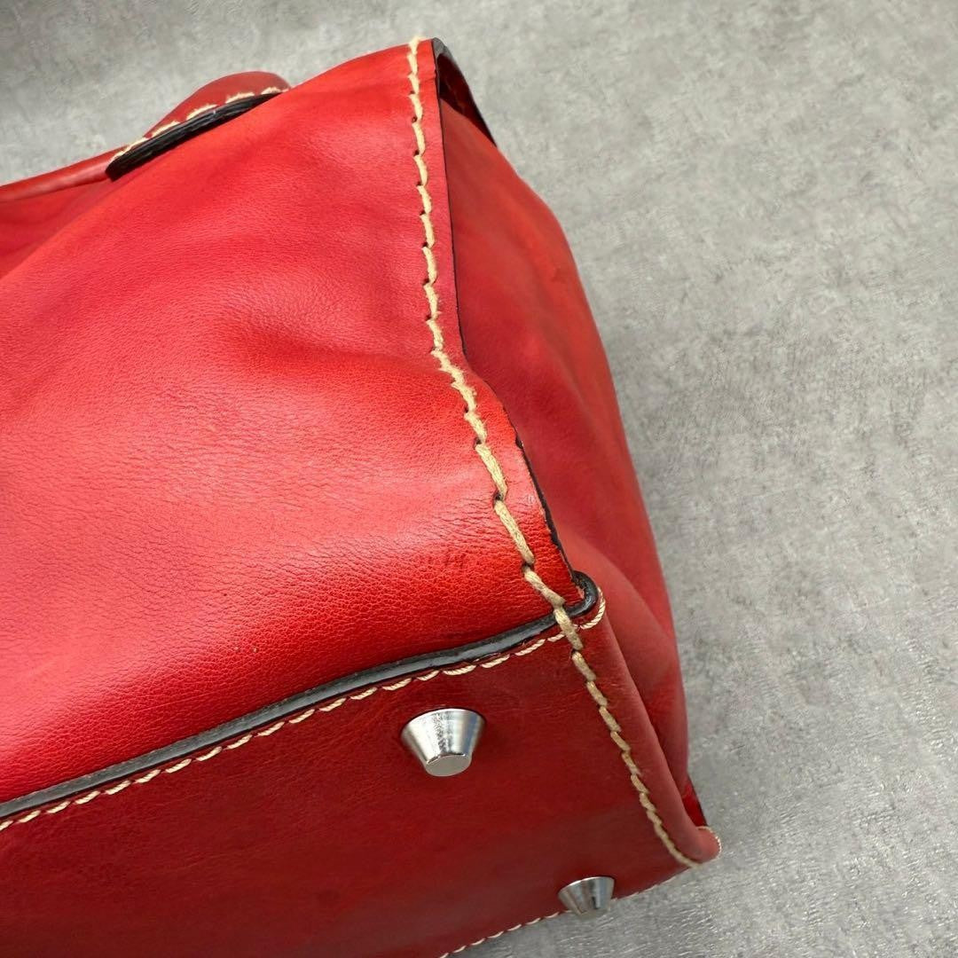 Chloe Hand Bag Tote Purse Edith stitch pocket Bag Leather Red Authentic