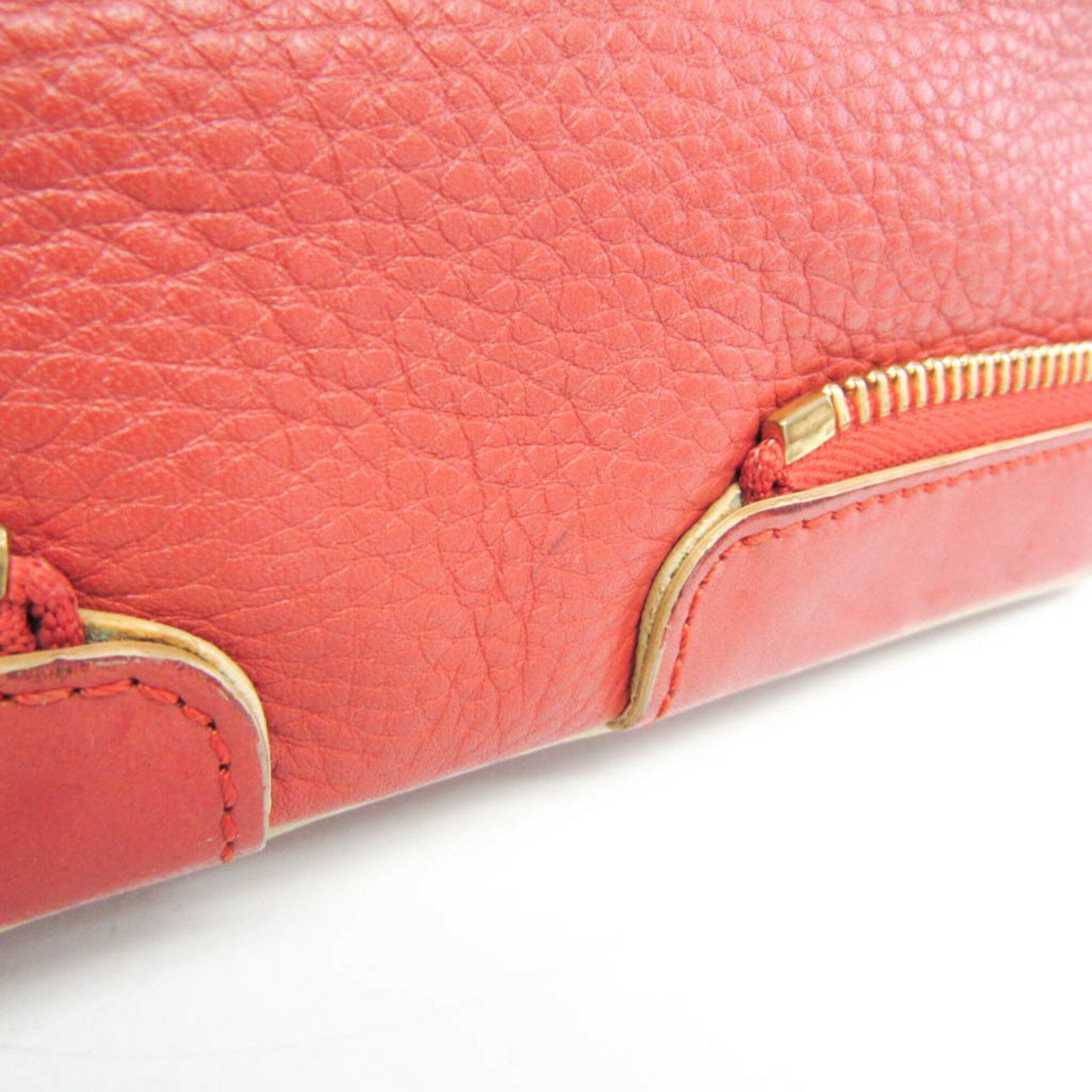 Chloe Hand Bag Tote Purse Leather Red Brown Authentic