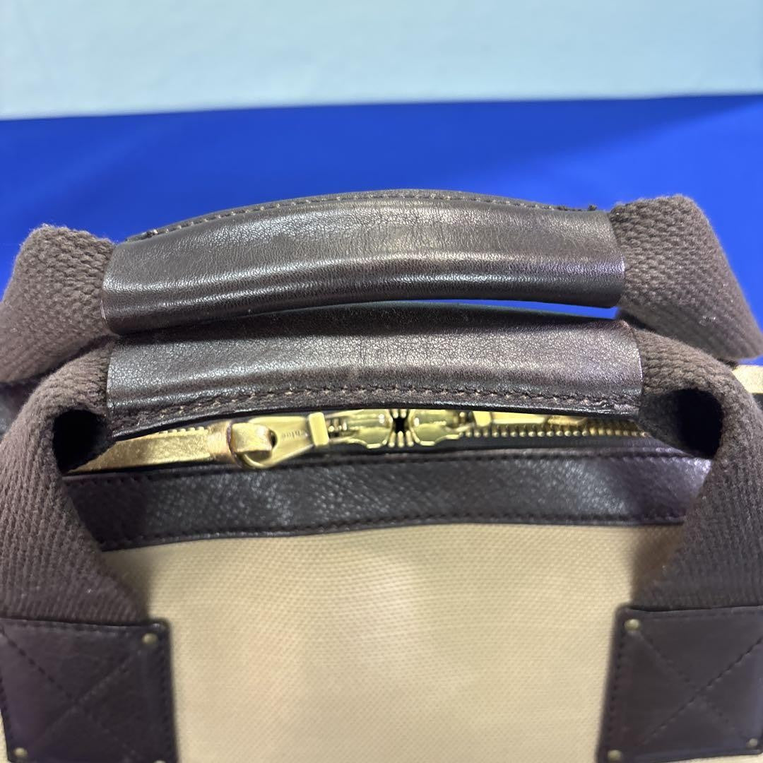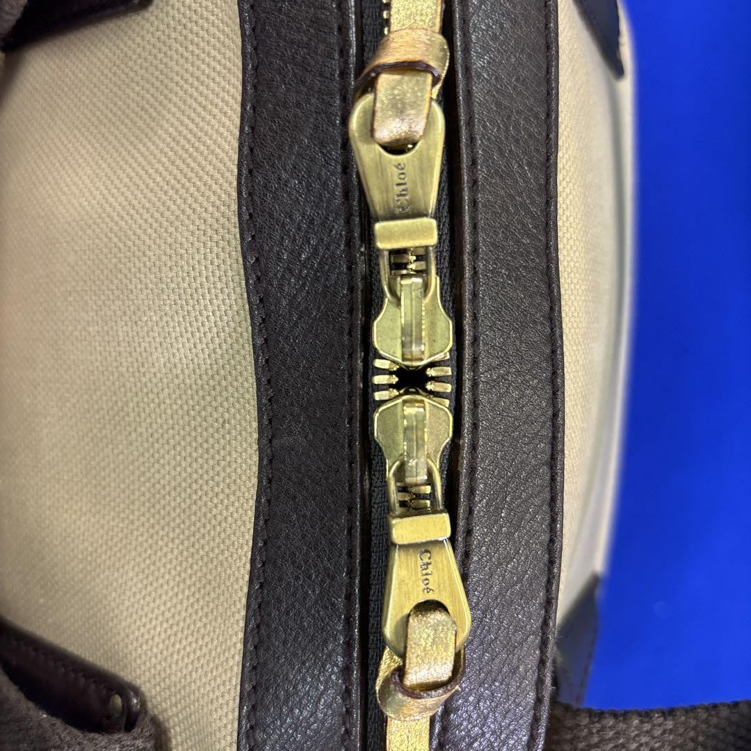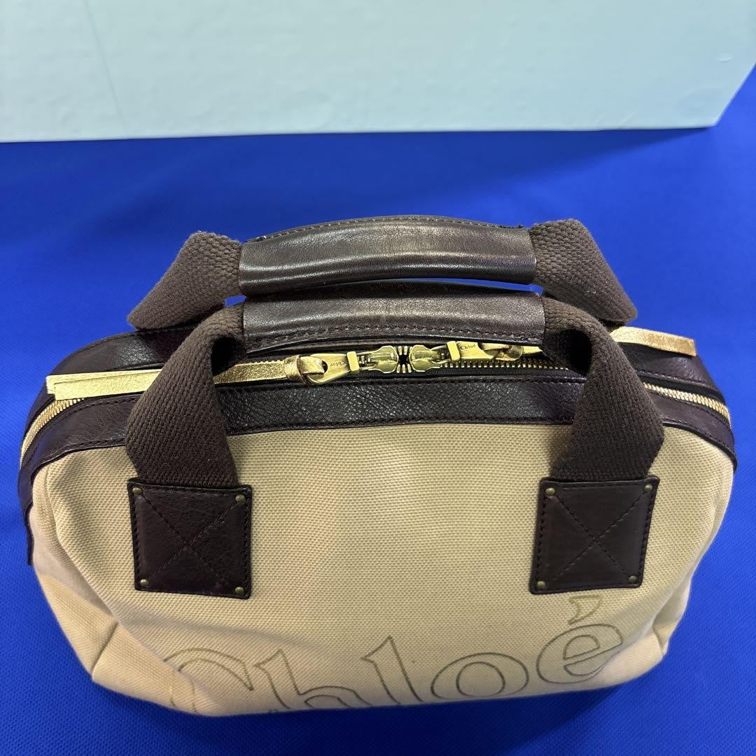Chloe Hand Bag Tote Purse Logo Canvas Leather Beige Dark Brown Authentic