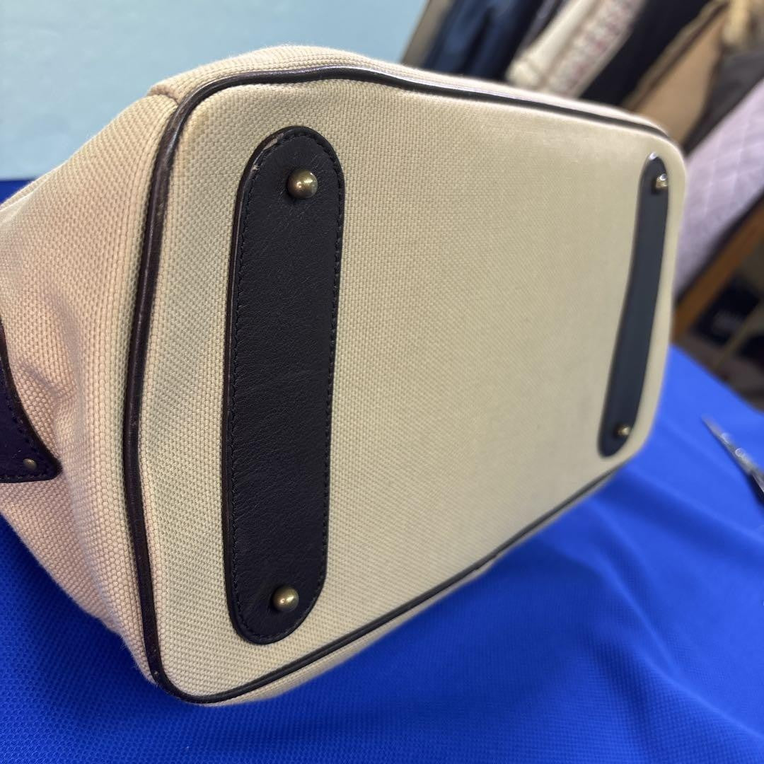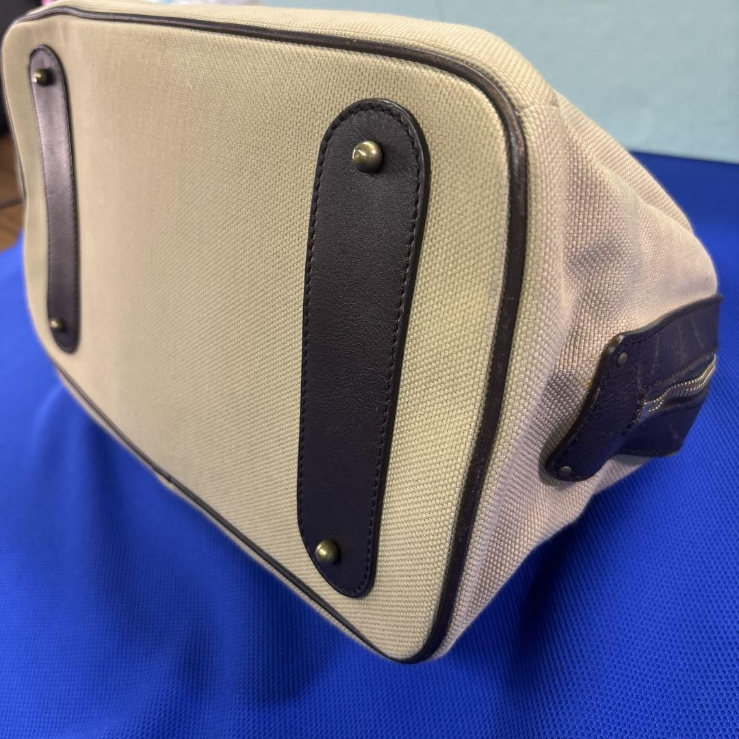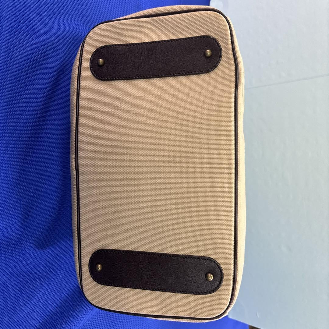 Chloe Hand Bag Tote Purse Logo Canvas Leather Beige Dark Brown Authentic