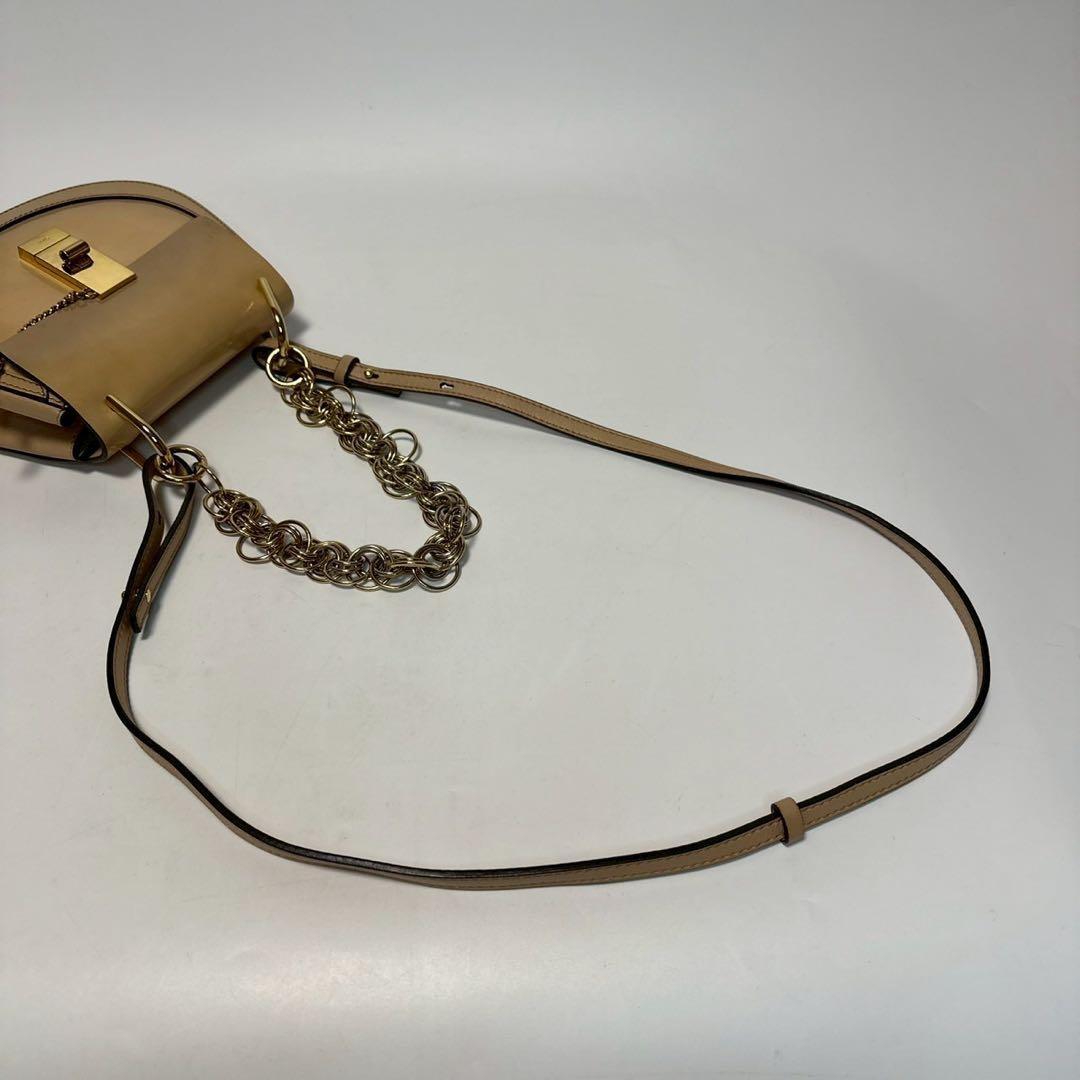 Chloe Hand Shoulder Bag Tote Purse 2way Drew Patent Leather Beige Authentic