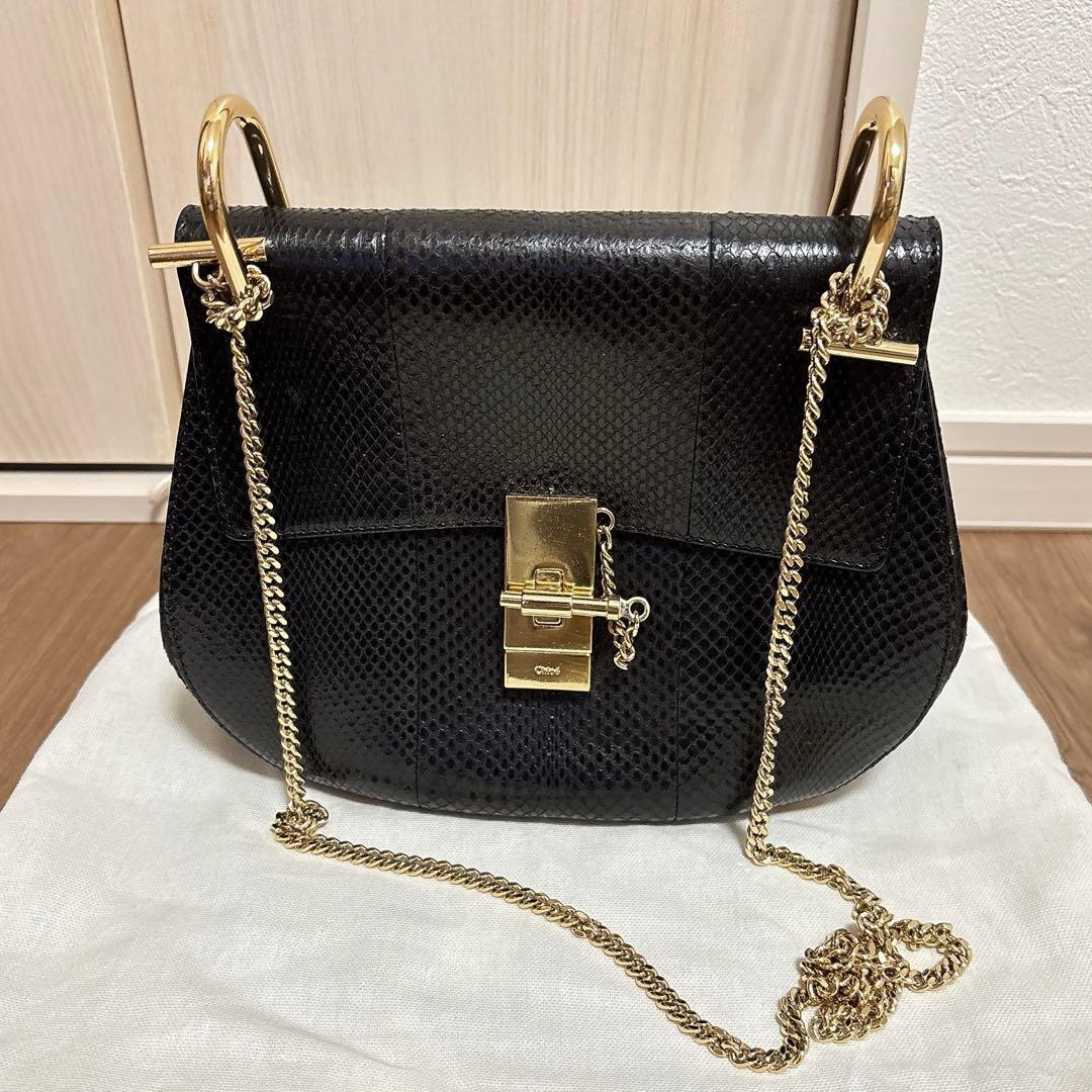 Chloe Shoulder Bag Purse Chain DREW Leather Black Authentic