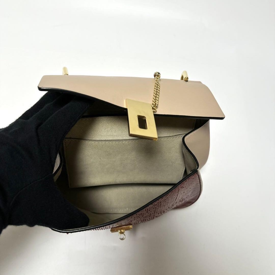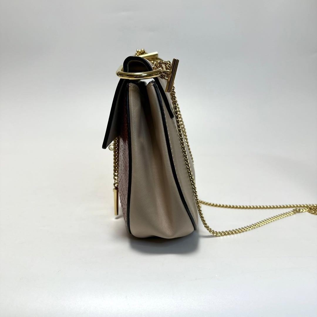 Chloe Shoulder Bag Purse Drew Chain Leather Red Beige Authentic