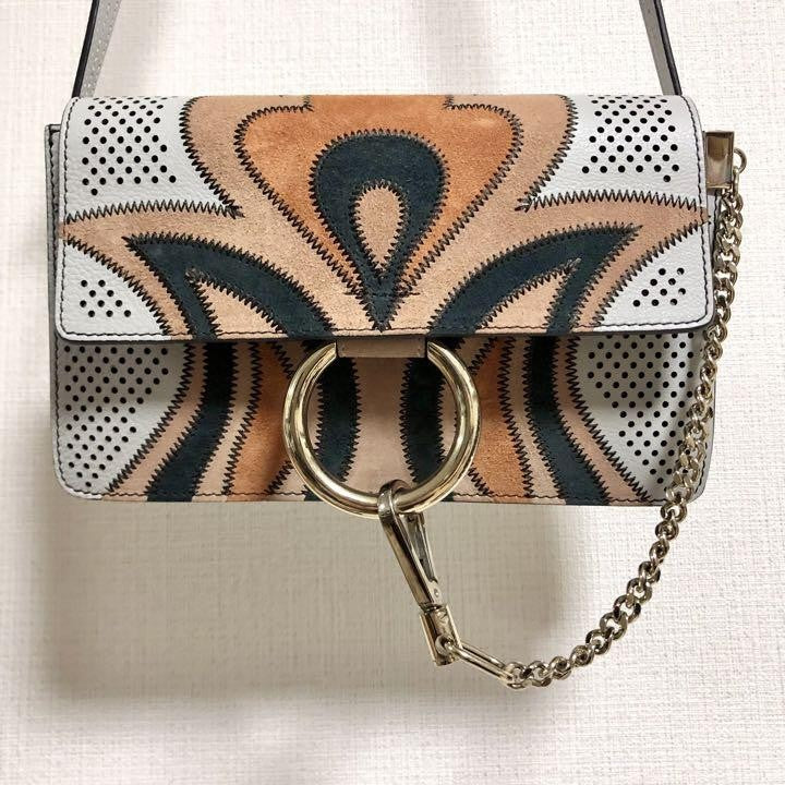 Chloe Shoulder Bag Purse faye Suede Gray Orange Black Authentic