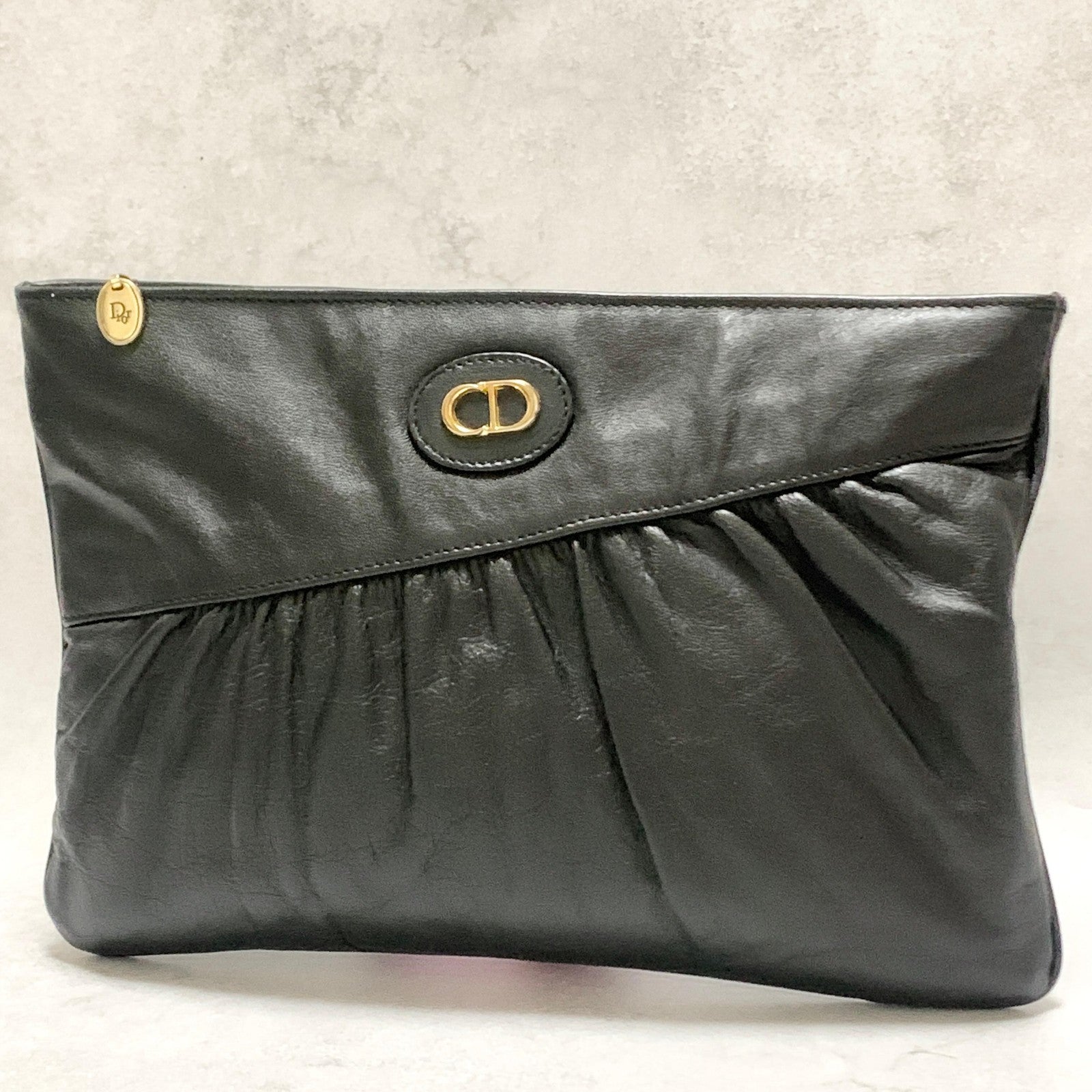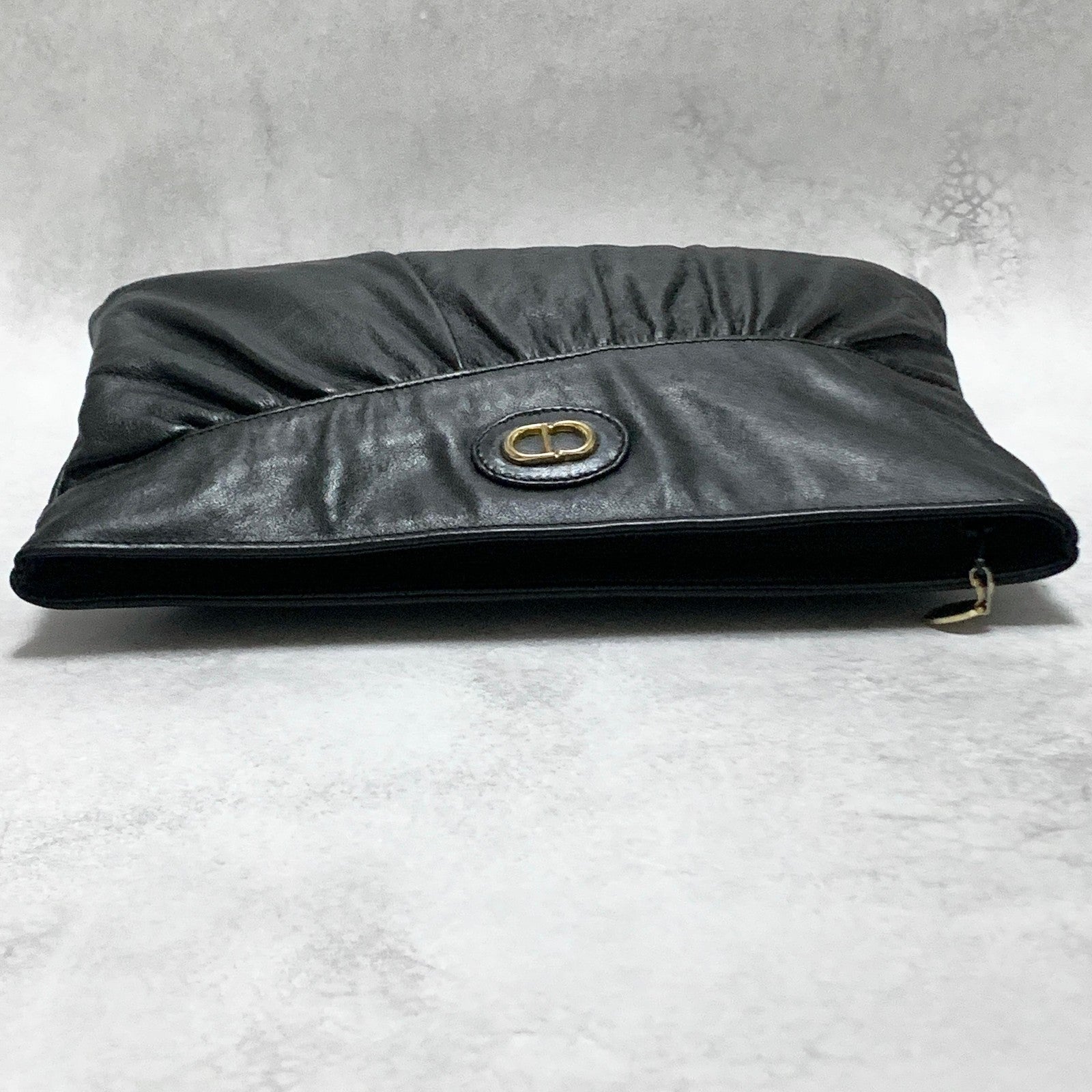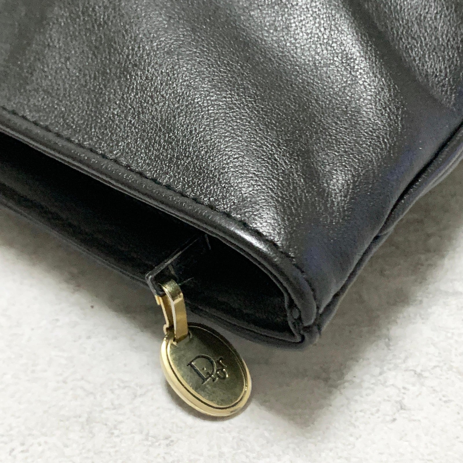Christian Dior Bag CD Clutch Purse Hand Leather Black Gold Used Authentic