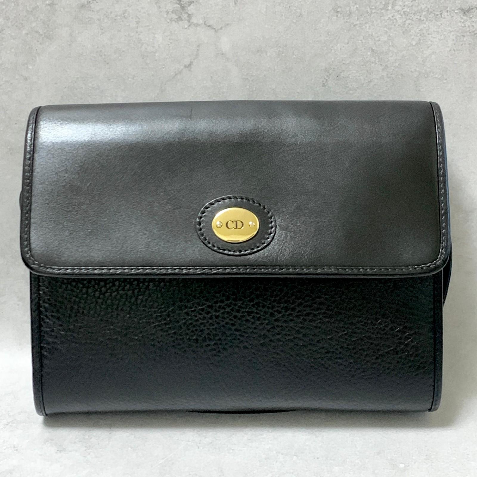Christian Dior Bag CD Shoulder Purse Leather Black Gold Used Women's Authentic