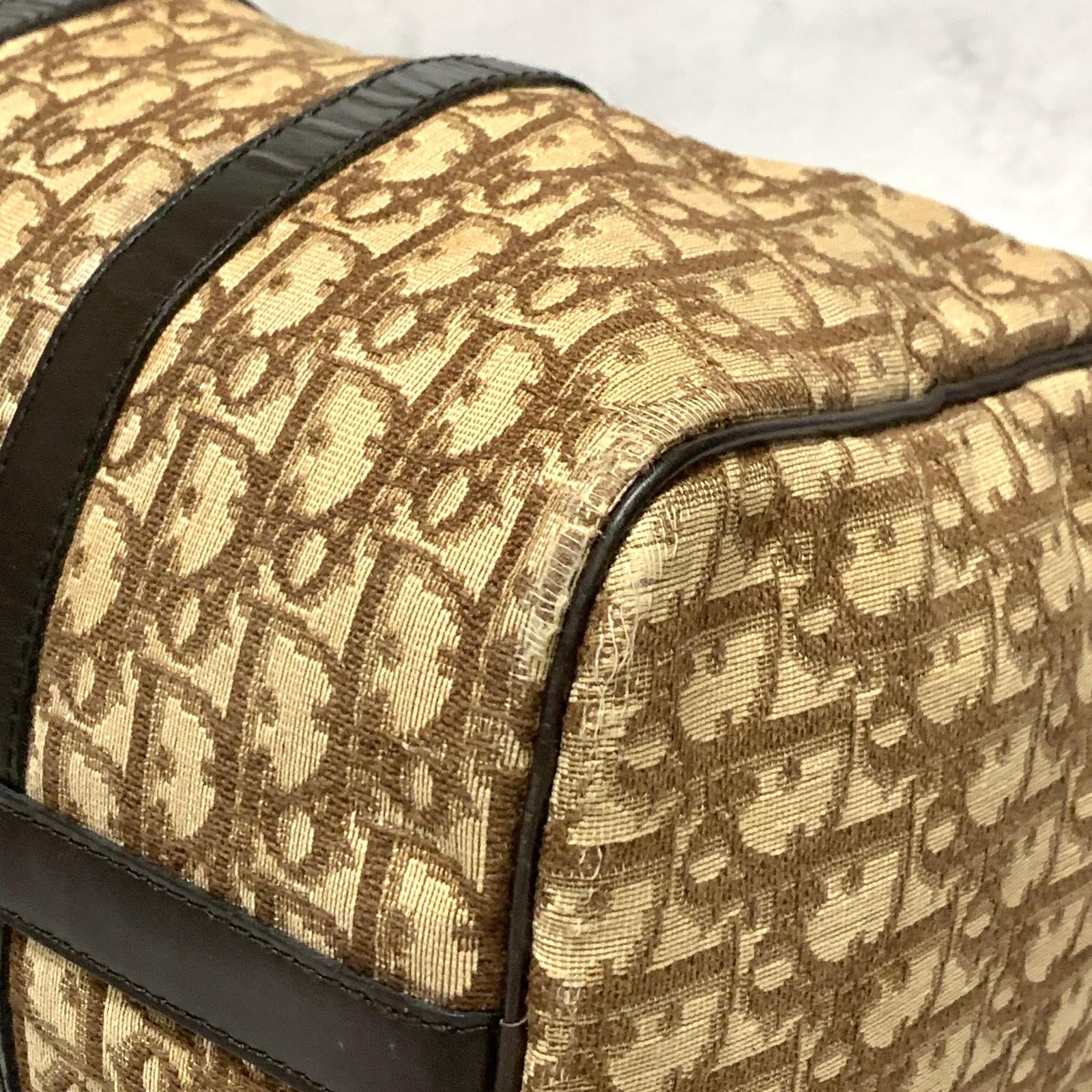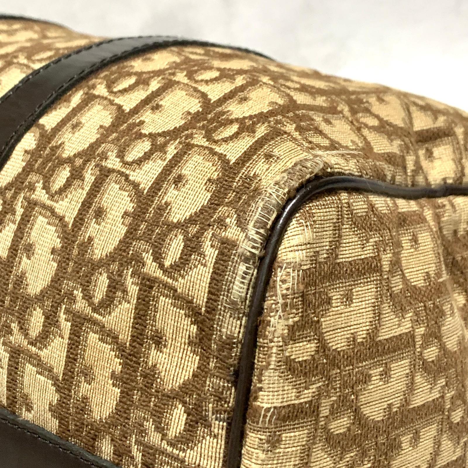 Christian Dior Boston Bag Trotter Handbag Purse Brown Canvas Leather Authentic