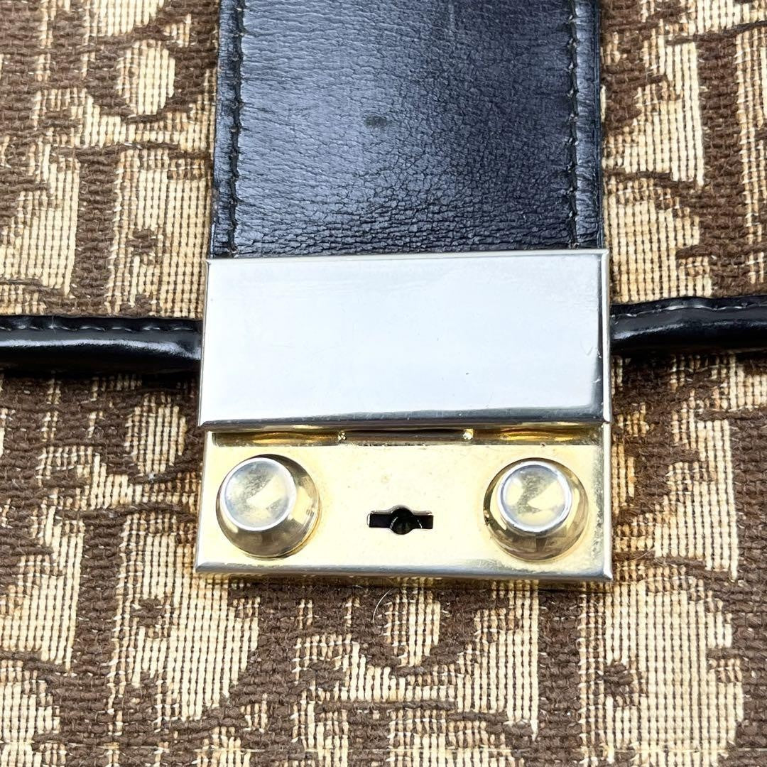 Christian Dior Clutch Bag Second Bag Trotter Canvas Leather Beige Dark Brown