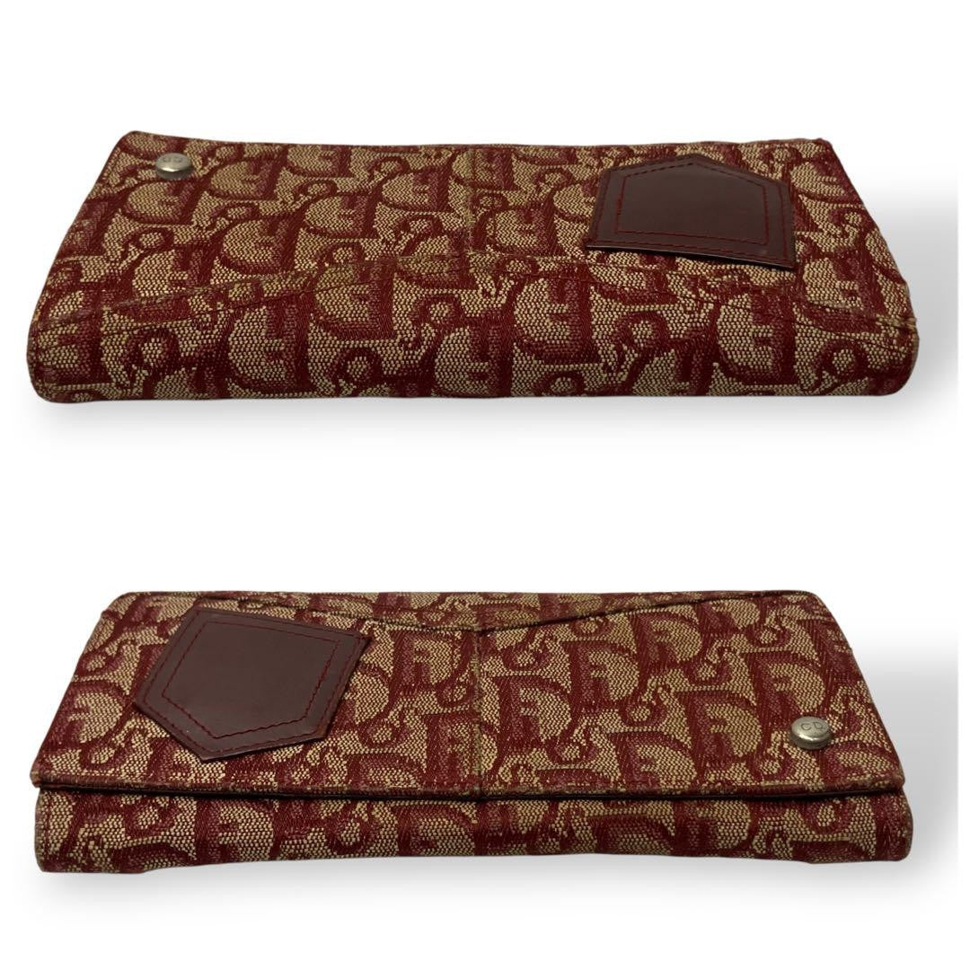 Christian Dior Flap Wallet Long Purse Trotter Canvas Leather Beige Red Authentic