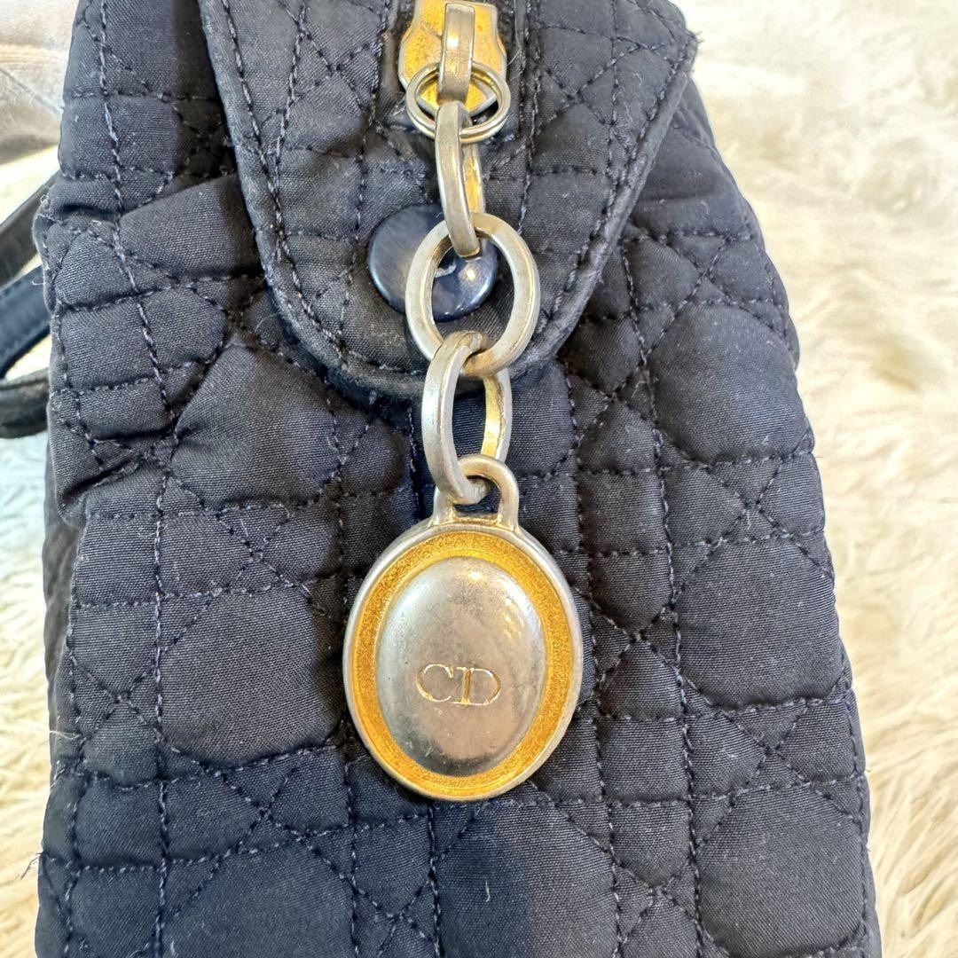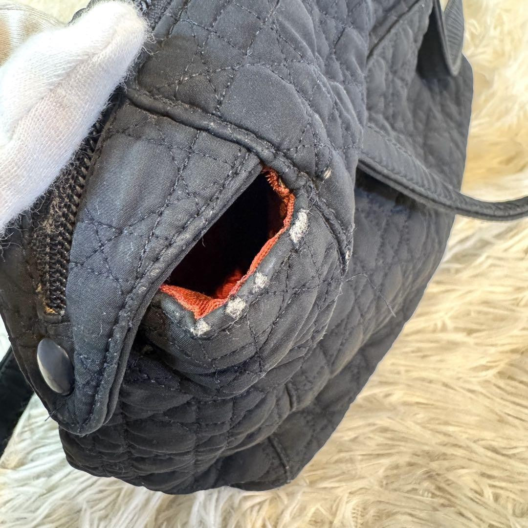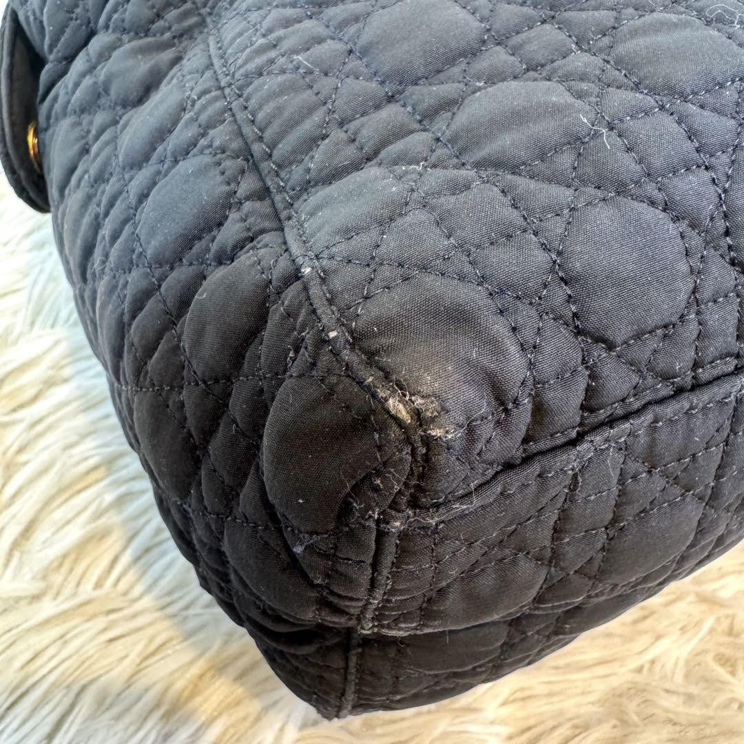 Christian Dior Hand Bag Tote Purse Cannage Nylon Black Authentic
