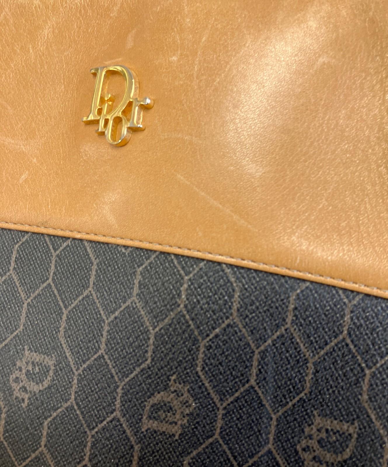 Christian Dior Hand Bag Tote Purse Honeycomb Black Brown Authentic