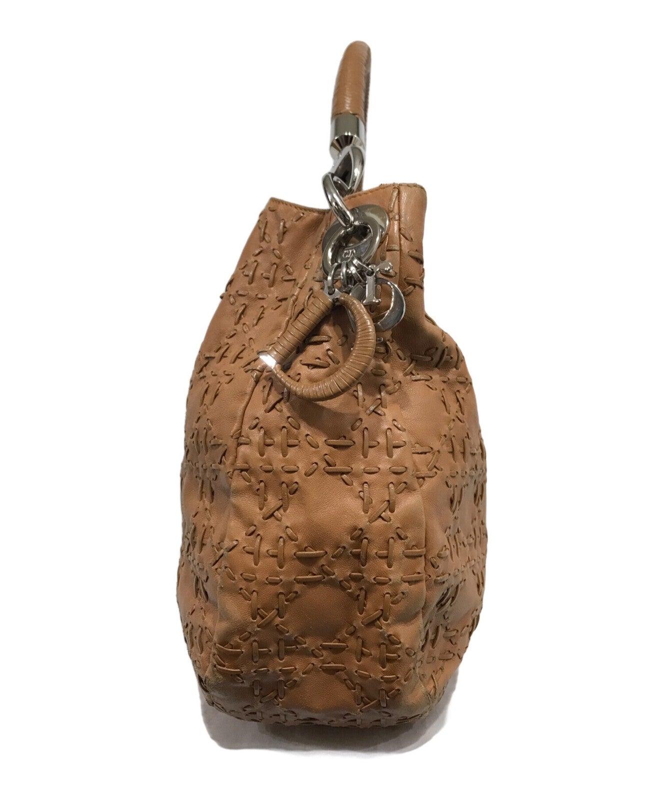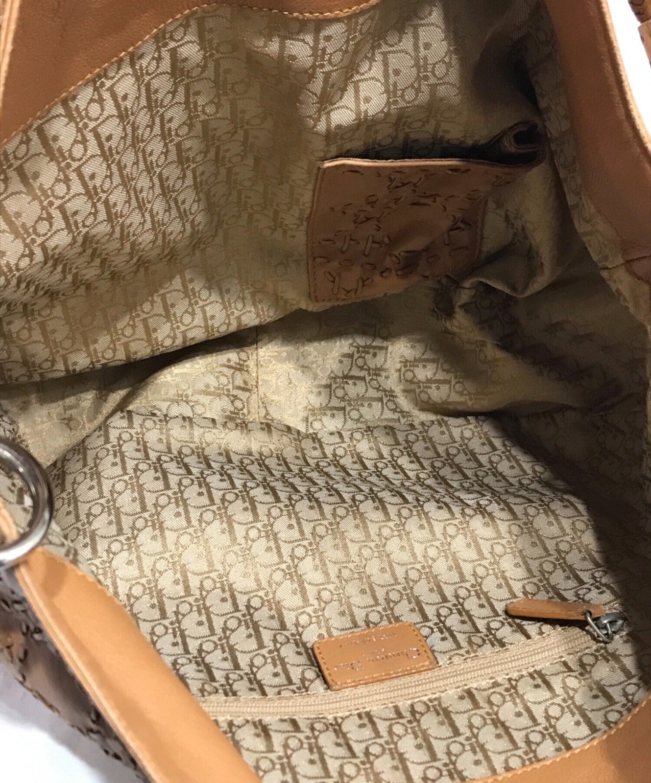 Christian Dior Hand Bag Tote Purse Logo charm Leather Brown Authentic
