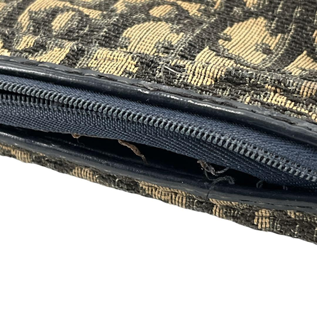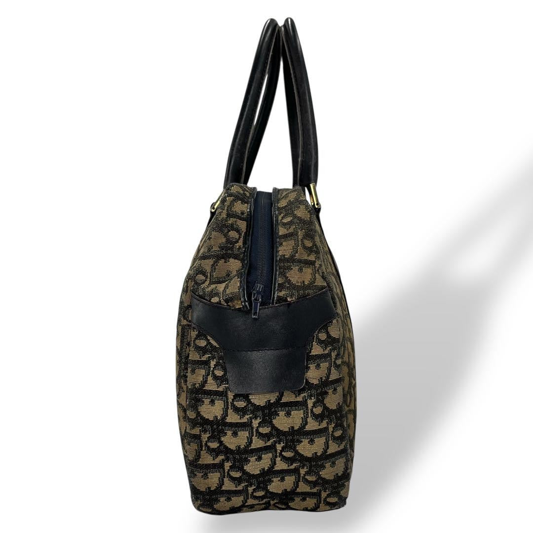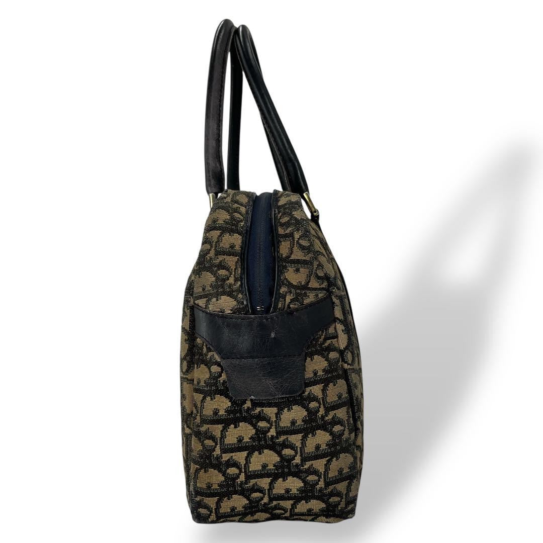 Christian Dior Hand Bag Tote Purse Mini Boston Trotter Canvas Leather Navy Auth