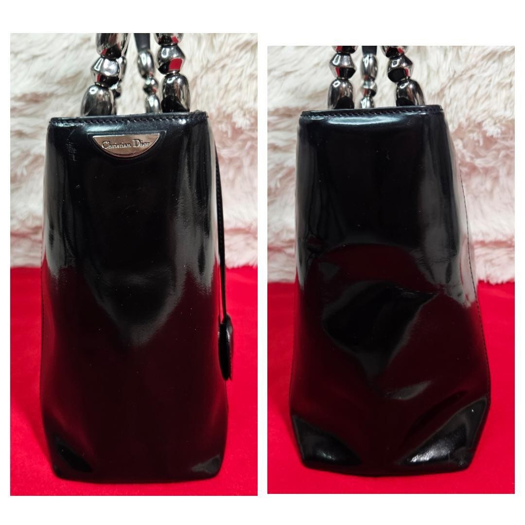 Christian Dior Hand Bag Tote Purse Patent Leather Black Authentic