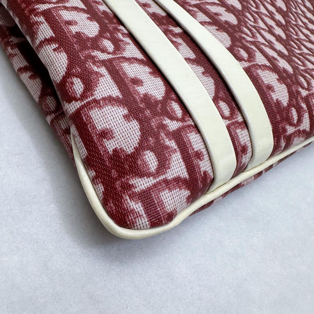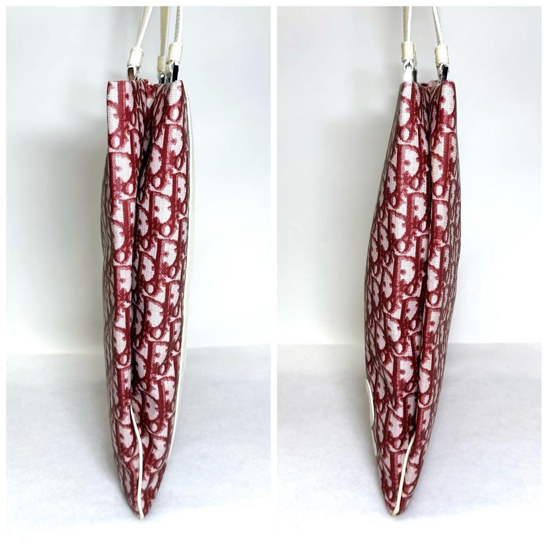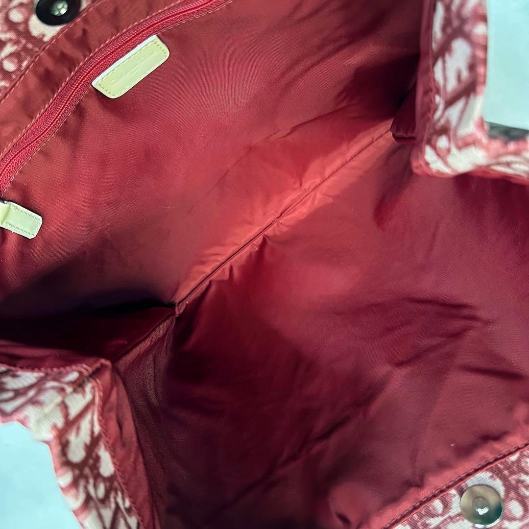 Christian Dior Hand Bag Tote Purse Trotter No.2 Canvas Red White Authentic