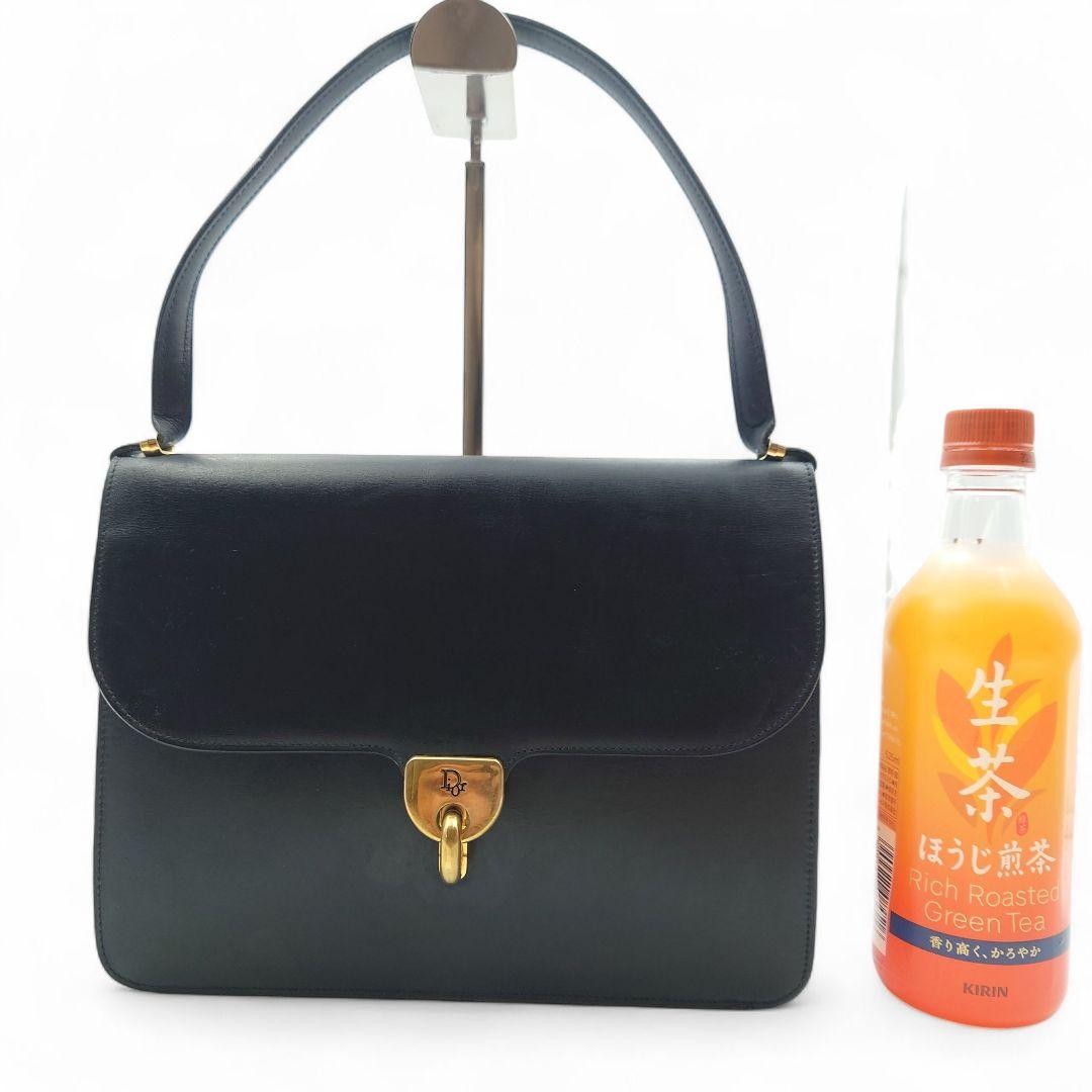 Christian Dior Hand Shoulder Bag Tote Purse Logo Leather Navy Authentic