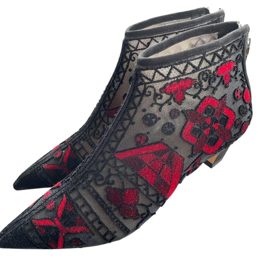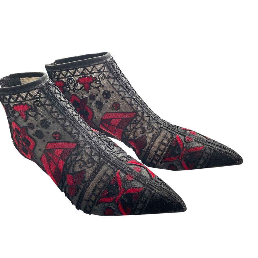 Christian Dior Short Boots Shoes EU 36.5 US 6.5 Black Red Authentic